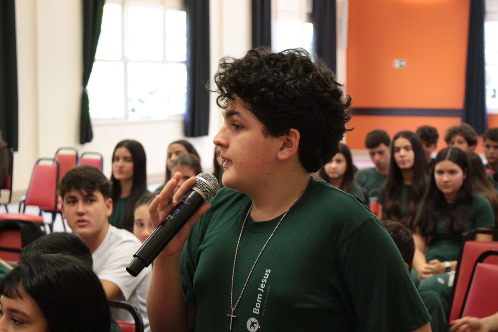 Petrópolis, 27 de outubro de 2025 — O Instituto Teológico Franciscano (ITF) recebeu nesta segunda-feira o Encontro com Líderes Religiosos, uma atividade especial promovida para as turmas do 9º ano do Colégio Bom Jesus, reunindo estudantes das unidades Canarinhos, São José e Menino Jesus. O evento integrou a disciplina de Ensino Religioso e teve como propósito aproximar os alunos da diversidade de tradições de fé, incentivando o respeito, o diálogo e a convivência entre diferentes crenças.