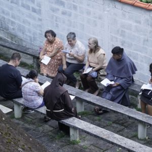 Divididos em grupos, os participantes refletiram sobre um episódio marcante da vida de São Francisco: a Impressão das Chagas. Segundo relatos, o santo recebeu em seu próprio corpo as marcas da crucificação de Cristo, o que simboliza sua entrega total à fé e ao serviço aos mais pobres.