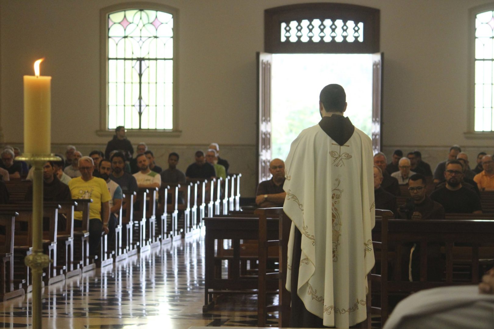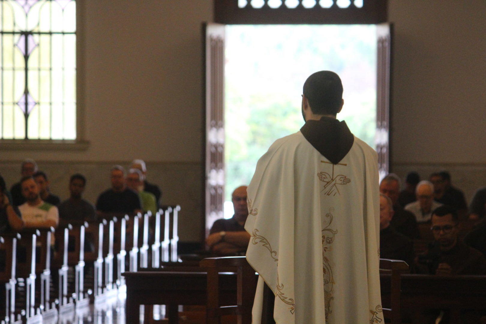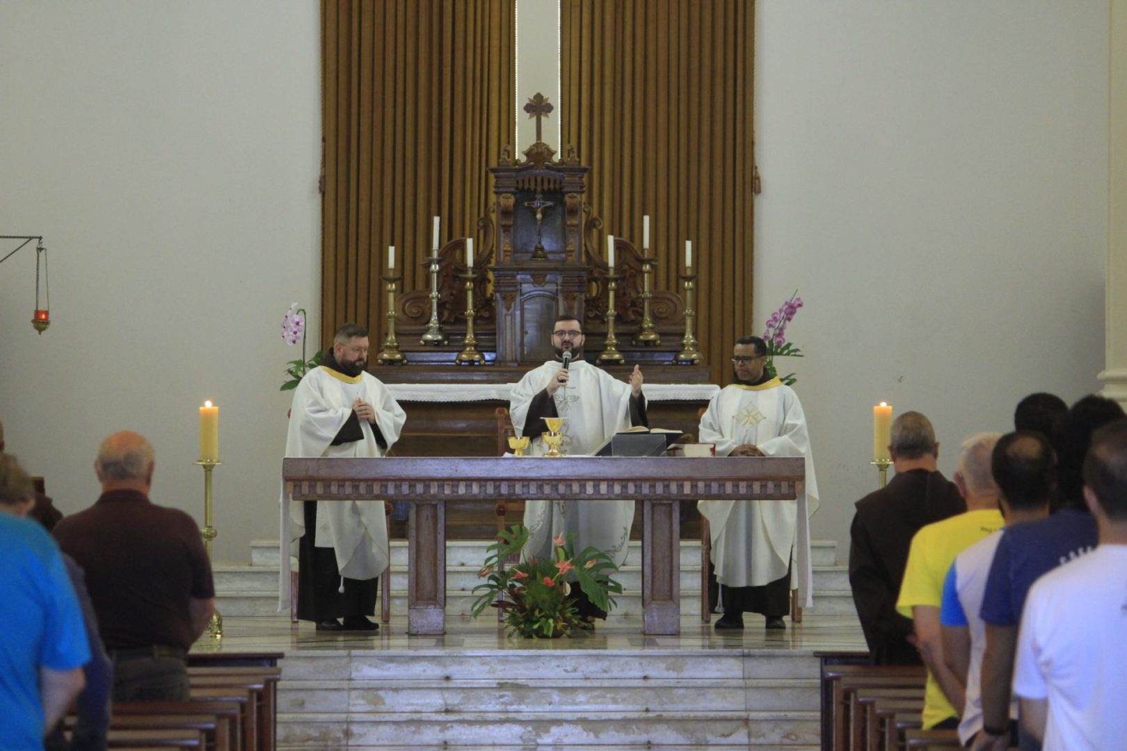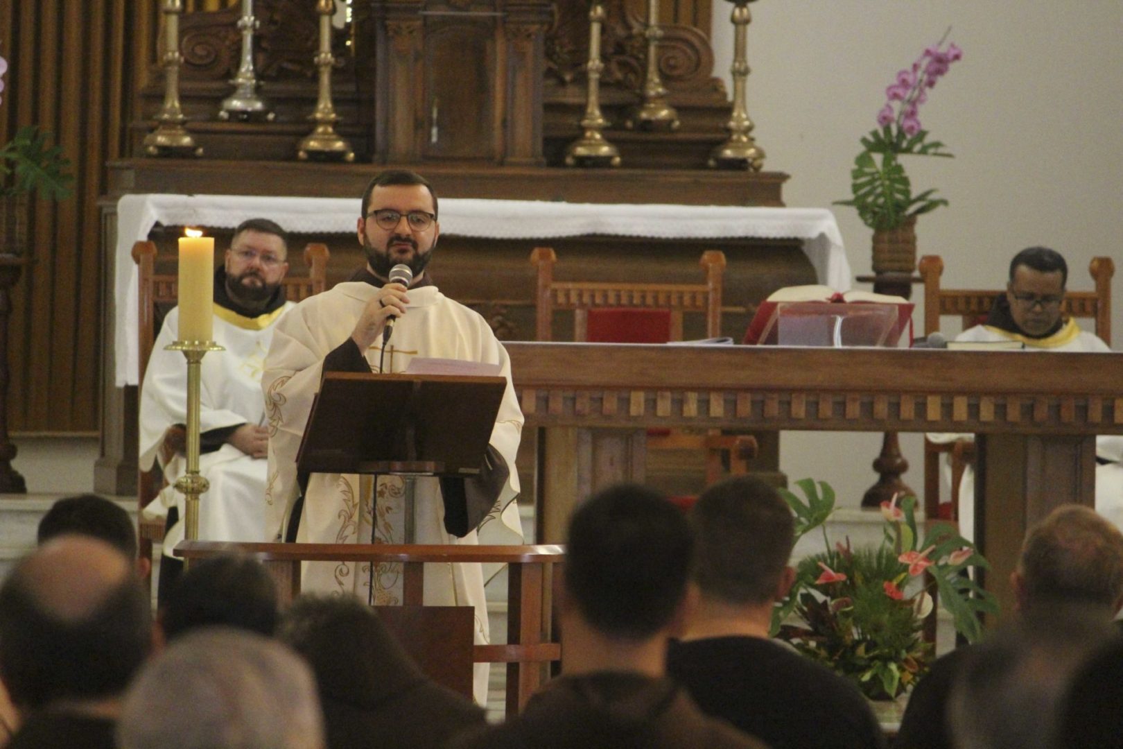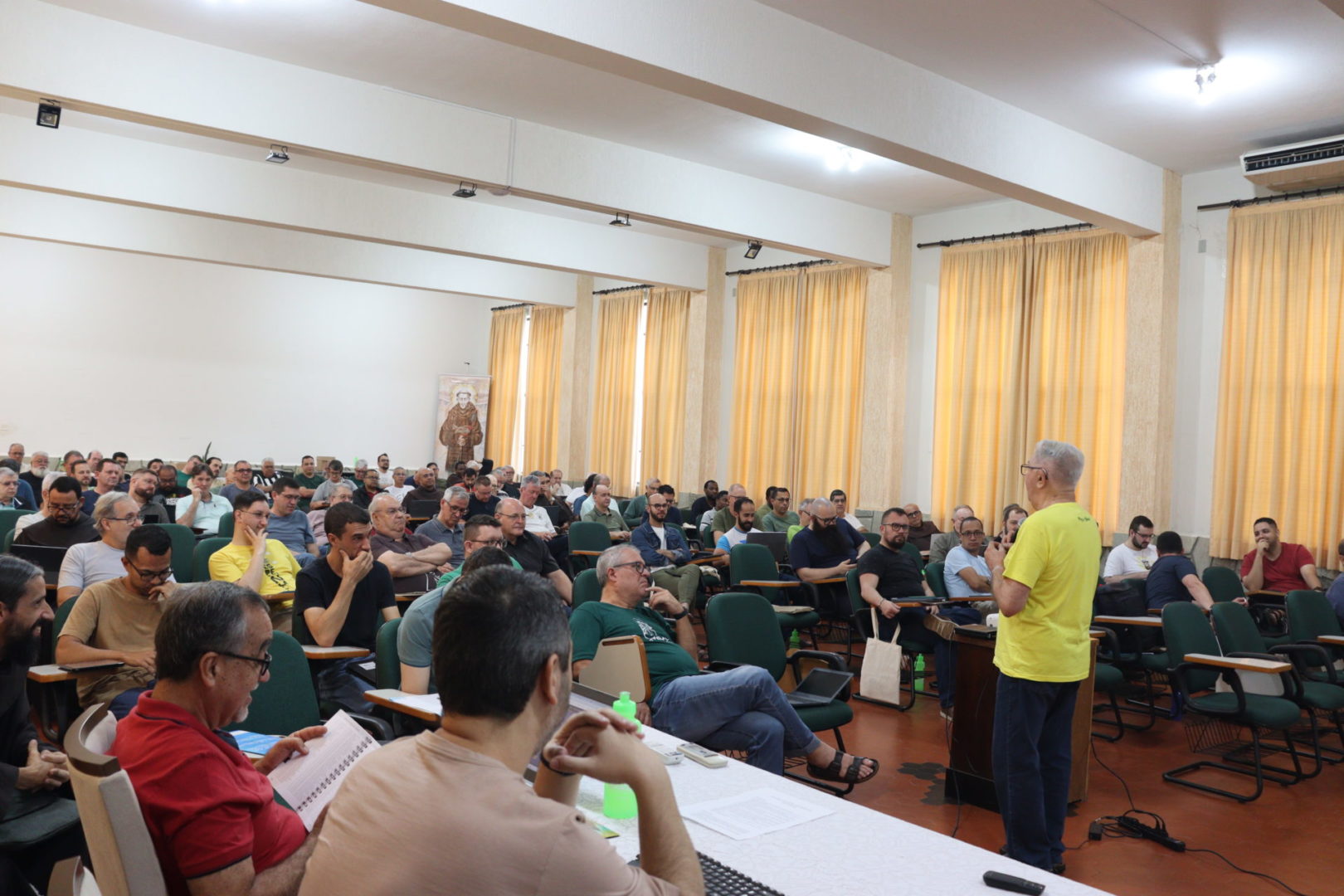 Nesta manhã do dia 6 de novembro, quarta-feira, no terceiro dia do capítulo, após o café, às 8h, os capitulares se reuniram para a Celebração Eucarística. Às 9h, os trabalhos de reflexão sobre a Vida da Província começaram. Os frades capitulares debruçar-se-ão hoje sobre Eixos temáticos da Evangelização: comunicação, educação, missões, paróquias e santuários, solidariedade e JPIC e juventudes.