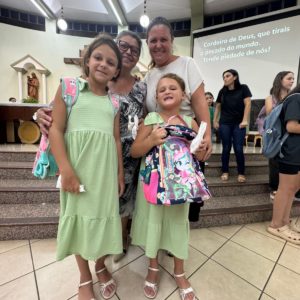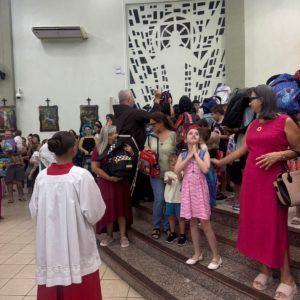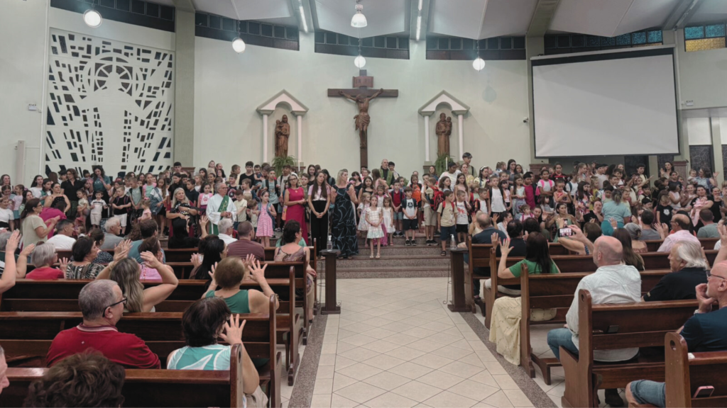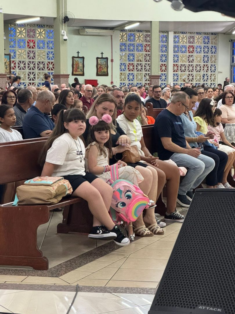 Durante a celebração, a presença das crianças chamou a atenção e deu um tom especial à liturgia. Acompanhadas dos pais, elas apresentaram suas mochilas como sinal de entrega da vida escolar a Deus, pedindo sabedoria, proteção e perseverança nos estudos. O gesto simbólico reforça a missão da Igreja em caminhar junto com as famílias também na formação humana, espiritual e educacional das novas gerações.