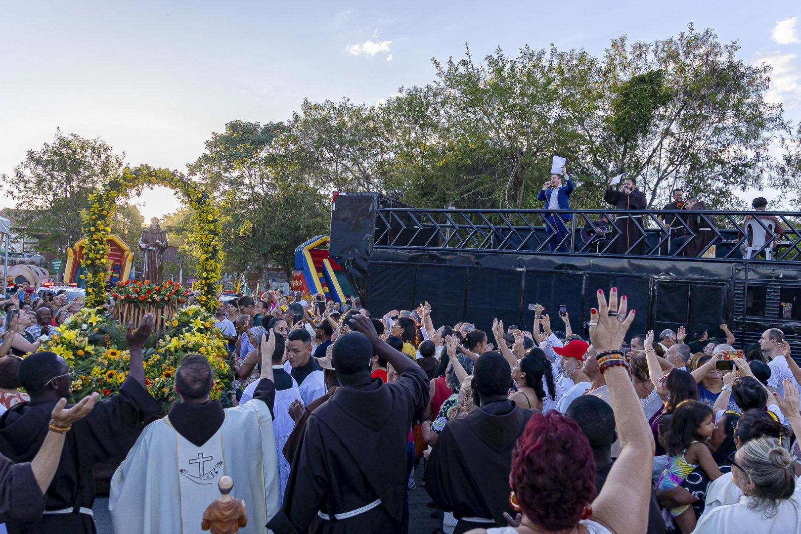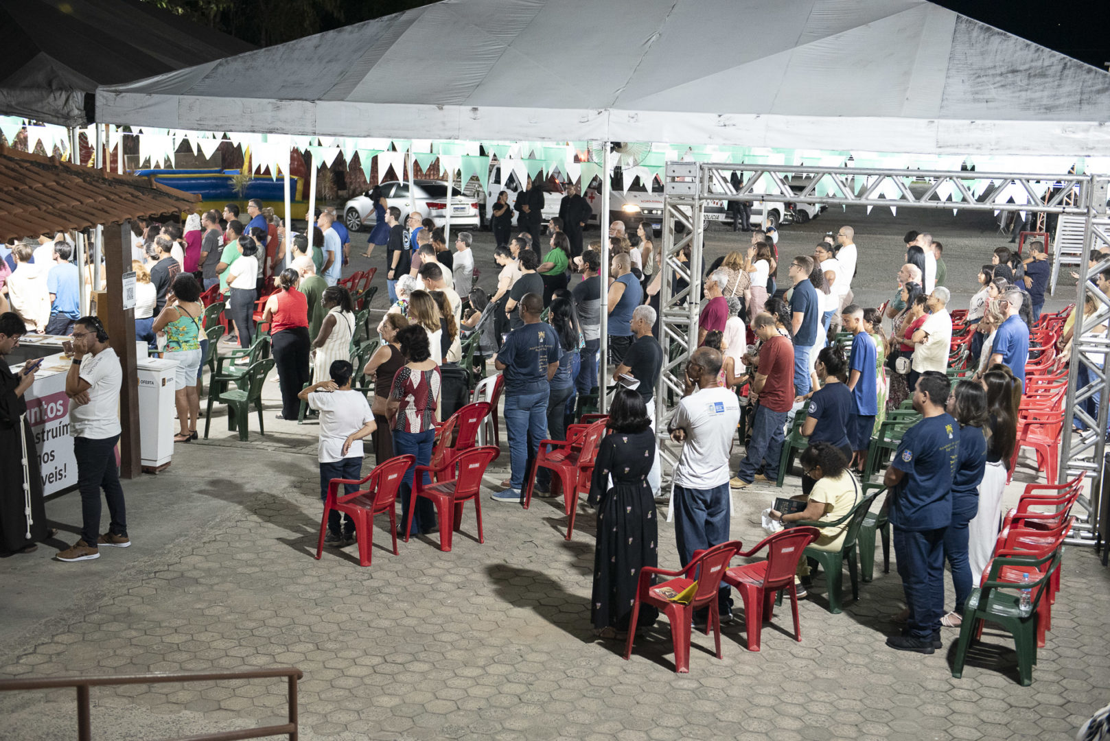 Esse apoio possibilitou uma estrutura mais robusta, com palco, tendas cobertas para os fiéis, telão de LED, sonorização externa, equipe de segurança e limpeza, enfermagem, comunicação e produção de shows.