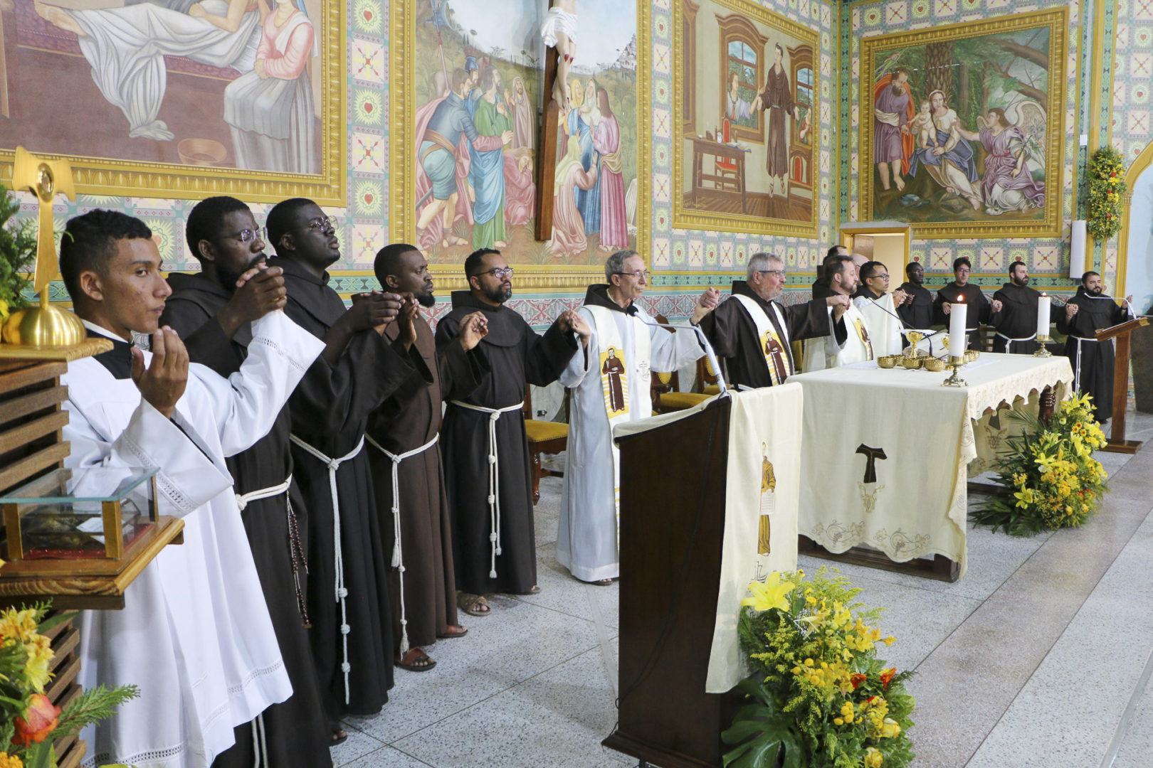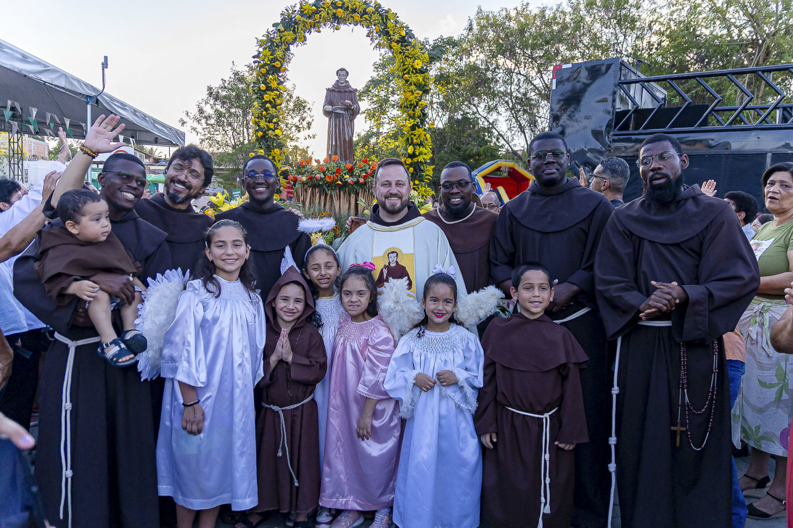 Durante a festa, nove frades do pós-noviciado da cidade de Campo Largo (PR) estiveram presentes entre os dias 17 e 26 de outubro. Entre eles, cinco frades angolanos da então Custódia Mãe de Deus, em Angola.