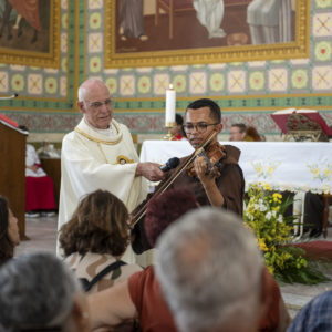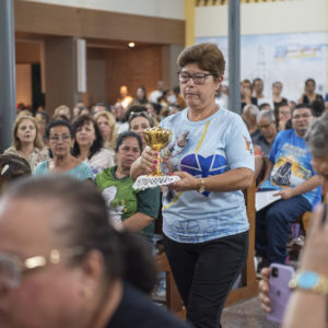 Durante as celebrações, os fiéis também foram convidados a gestos concretos de solidariedade. No ofertório, doações de alimentos não perecíveis foram recolhidas e destinadas ao Projeto Social Perfeita Alegria, ligado ao Santuário.