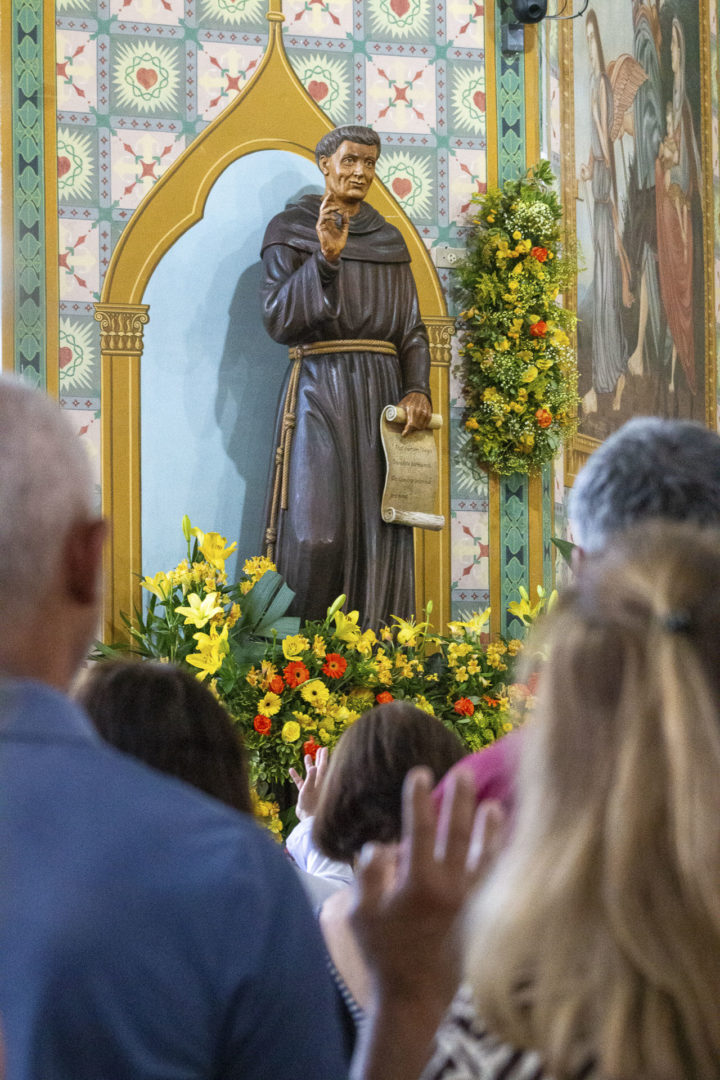 O Santuário se encheu de fiéis vindos de diversas regiões do Brasil, especialmente do Vale do Paraíba, que, unidos em oração, renovaram sua devoção ao primeiro santo brasileiro, pedindo, como ele, a graça de viver em paz com Deus, com os irmãos e com toda a criação.
