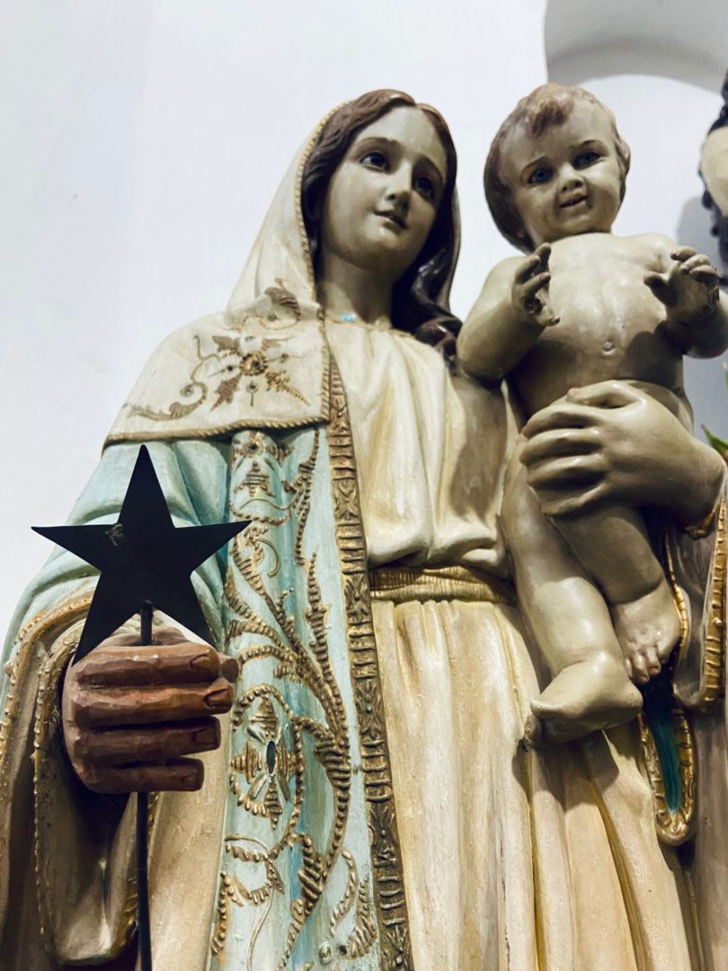 Sob o título de Nossa Senhora da Estrela, Maria é invocada como Stella Maris (Estrela do Mar), expressão antiga da tradição cristã que simboliza a mãe de Jesus como guia segura para os fiéis em meio às tempestades da vida. Frei Jean recordou a tradição que narra a experiência de monges que, desejosos de alcançar Jerusalém, enfrentaram as tormentas do mar. Em meio às ondas agitadas, clamaram pela intercessão da Virgem da Estrela e, pela fé, encontraram a salvação: “Assim como as estrelas orientam os marinheiros em alto mar, Maria, a Senhora da Estrela, quer nos conduzir até a verdadeira Estrela, que é Cristo”, ressaltou o pároco.