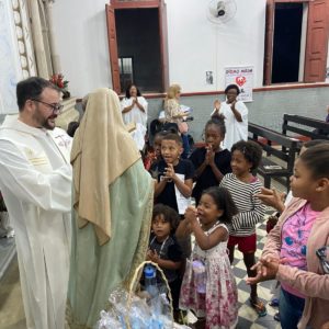 “Aqui existe a fé que, como estrela, guia e sustenta a vida e o anúncio de Cristo”, afirmou Frei Jean, lembrando que a devoção mariana sempre teve como finalidade apontar para Jesus. O sacerdote sublinhou ainda que Deus, em seu desígnio de amor, quis que a salvação viesse através de Maria. “Ele poderia tudo e assim fez: nasceu de uma mulher, do ventre de uma mulher.”