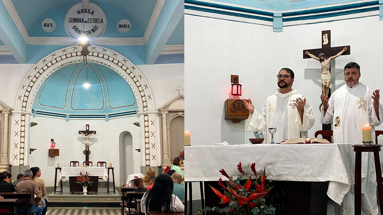 Nesta segunda-feira, 8 de setembro, os fiéis se reuniram para celebrar, com fé e devoção, a Solenidade de Nossa Senhora da Estrela, na igreja histórica dedicada a essa invocação da Virgem Maria, pertencente à Paróquia Santa Clara de Assis, no bairro Imbariê, em Duque de Caxias (RJ). A celebração, marcada por emoção e espiritualidade, foi presidida pelo pároco, Frei Jean Carlos Ajluni Oliveira, que destacou em sua homilia a importância da presença de Maria na vida da Igreja e no coração de cada cristão.