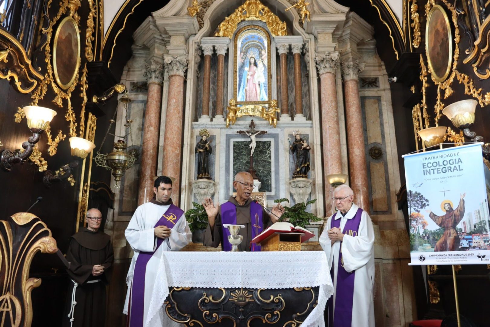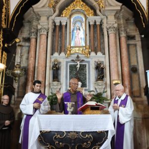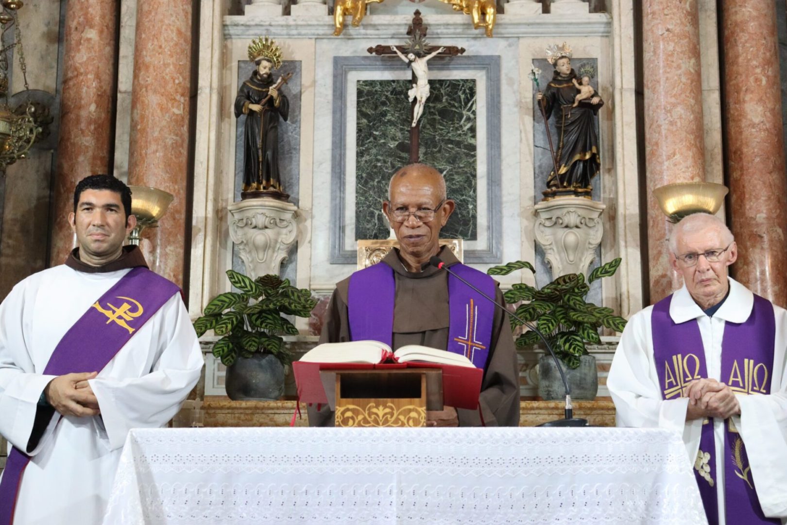 A Santa Missa foi concelebrada por Frei Aldolino Bankhardt, eleito novo secretário do Regional e pelo diácono, Frei David Belineli, que agora está a serviço da evangelização da Fraternidade Santo Antônio de Sant’Ana Galvão (Paróquia Santa Clara de Assis, de Colatina).