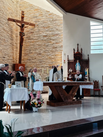 Em sua homilia, Frei Paulo enfatizou o relacionamento fraterno e familiar que o povo de Teresópolis estabeleceu com a Província. “A comunidade acolheu com carinho os frades alemães que chegaram em 1891 para restaurar a Província. Naquela época, só havia um frade na Província por diversas circunstâncias históricas. Os frades restauradores vieram com um espírito missionário intenso. Teresópolis marca para nós, frades, um tempo bonito da graça de Deus. Somos gratos pela valiosa participação dessa comunidade na história da nossa Província”.