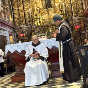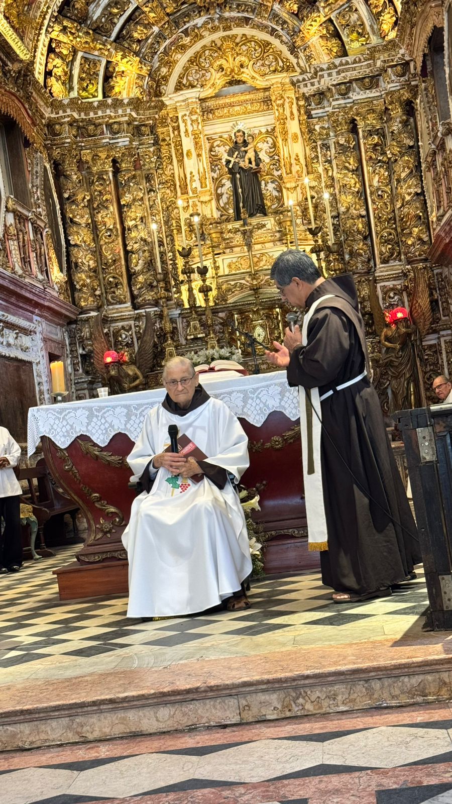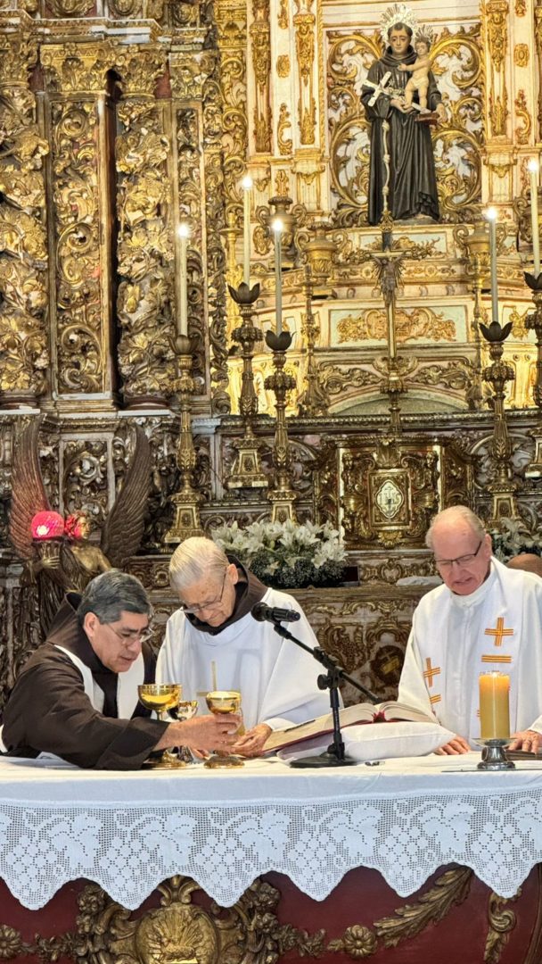 O clima da celebração foi de alegria e gratidão. Na homilia, Frei Gustavo Wayand Medella, Vigário Provincial e membro da Fraternidade do Convento, destacou a força, a fidelidade e a perseverança do homenageado, principalmente na superação dos diversos problemas de saúde que enfrenta há anos: “Este cuidado integral [de Deus] conduziu os seus passos dia após dia, conferindo-lhe a graça de chegar aos 90 anos, lúcido, ativo, mesmo atravessando diversos episódios de graves enfermidades. Nada disso lhe tirou a vontade de viver”, ressaltou Frei Gustavo.