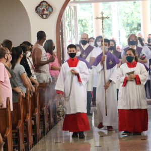 Frei Jeâ Andrade, animador do Serviço Vocacional da Província (SAV), fez a acolhida do povo e deu as boas vindas a todos nesta Eucaristia. Frei Jhones teve como concelebrantes o pároco Pe. Silvano Palmeira, Frei Paulo Santana, os diáconos Frei Josemberg Aranha e Frei Alan Leal de Mattos. Muitos dos seus confrades que estiveram na ordenação, participaram das Primícias, como o Ministro Provincial da Província da Imaculada Conceição, Frei Paulo Roberto Pereira e o Vigário Provincial, Frei Gustavo Medella.