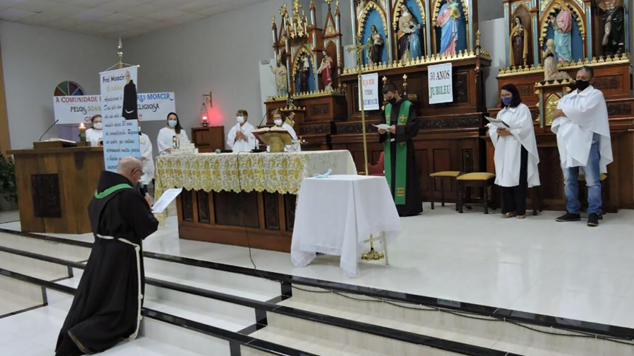 “Frei Moacir, hoje a Província Franciscana da Imaculada Conceição do Brasil celebra com o senhor este jubileu. Esse momento não se resume a uma contagem de dias e anos, mas celebra todo o mistério de Deus manifestado através de sua vida e de sua consagração”, disse Frei Robson.
