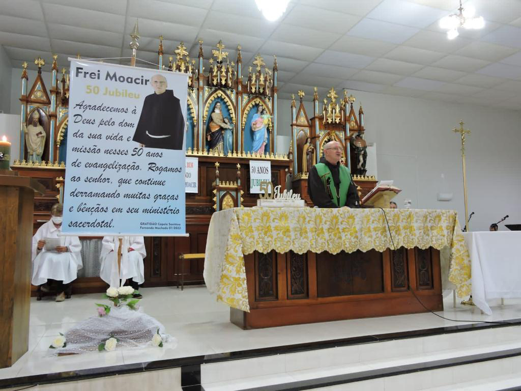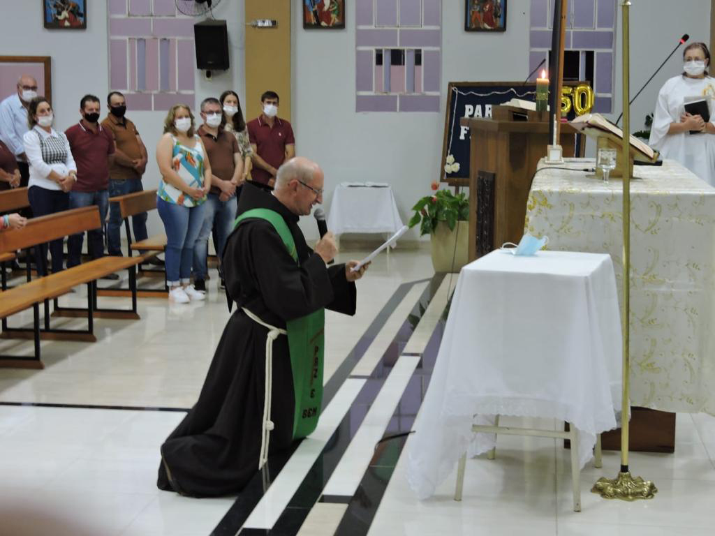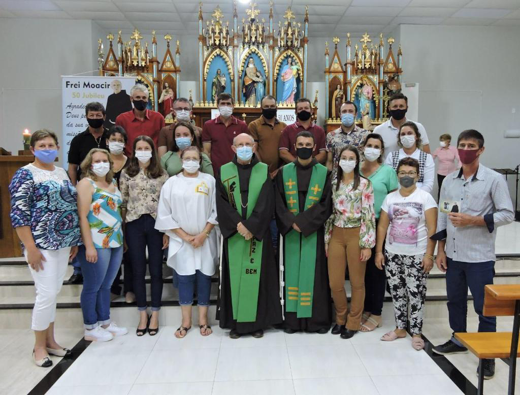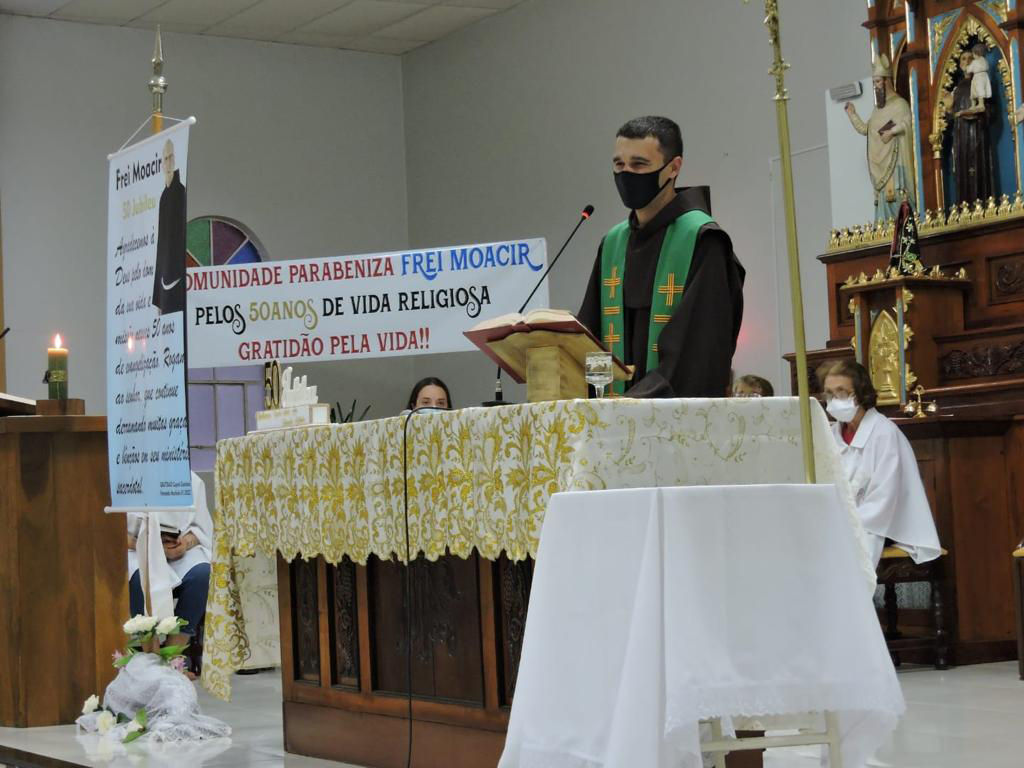 A Comunidade Fernando Machado, da Paróquia Patrocínio São José de Coronel Freitas (SP), testemunhou durante a Santa Missa, às 19 horas, deste sábado (29/01), a celebração do Jubileu de Ouro de Vida Religiosa de Frei Moacir Antônio, que renovou os votos diante da Comunidade e do Definidor da Província, Frei Robson Luiz Scudela.
