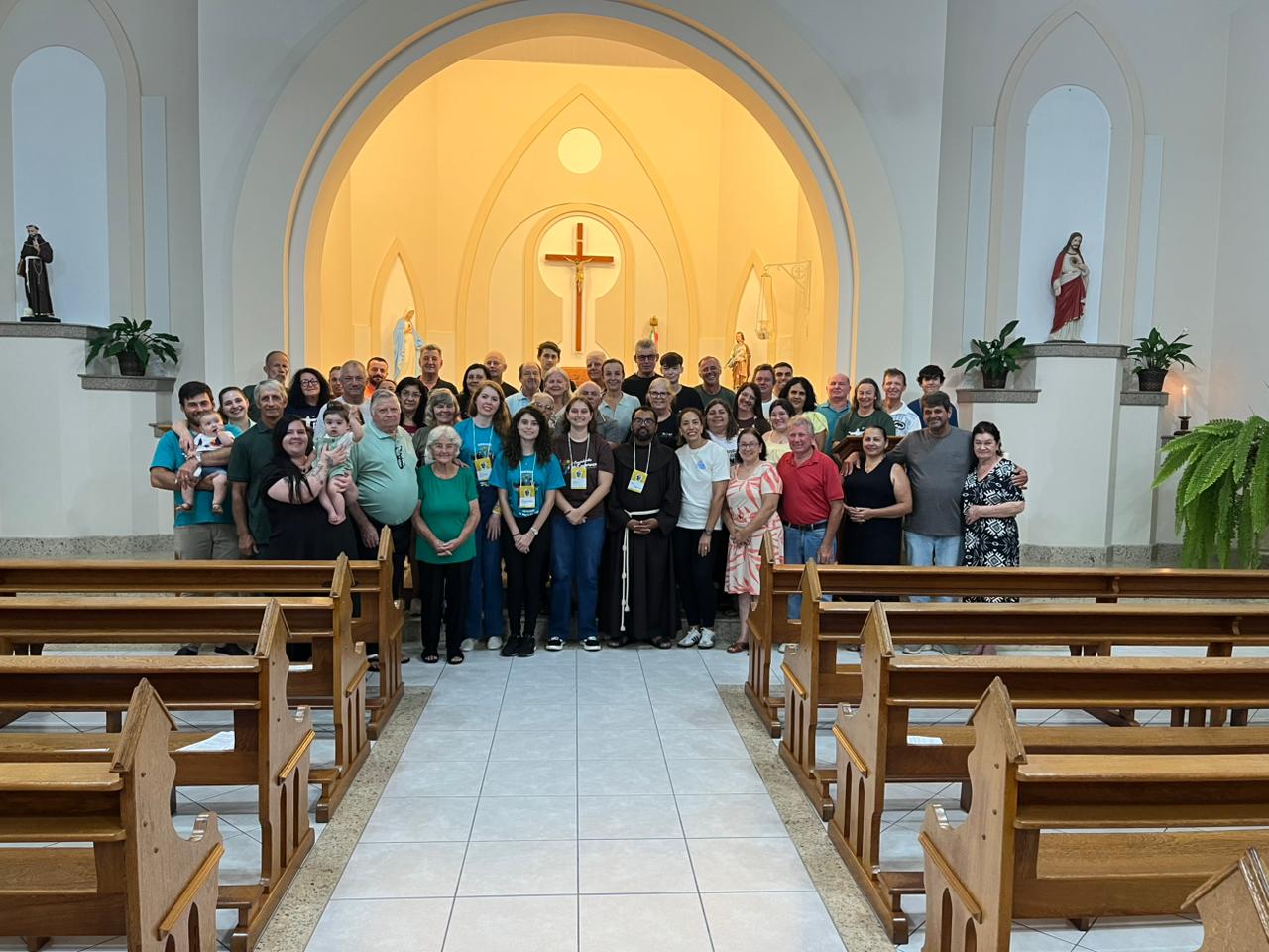 Encerrando o intenso dia missionário, jovens e comunidades participaram de celebrações em Santo Amaro da Imperatriz e Águas Mornas, agradecendo a Deus pelos frutos colhidos ao longo do dia e renovando o compromisso de seguir sendo missionários no dia a dia, testemunhando a Paz e o Bem.