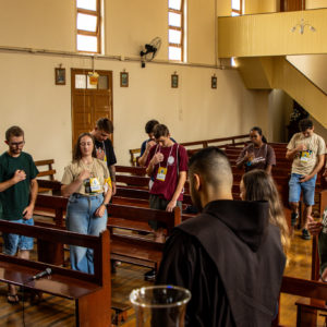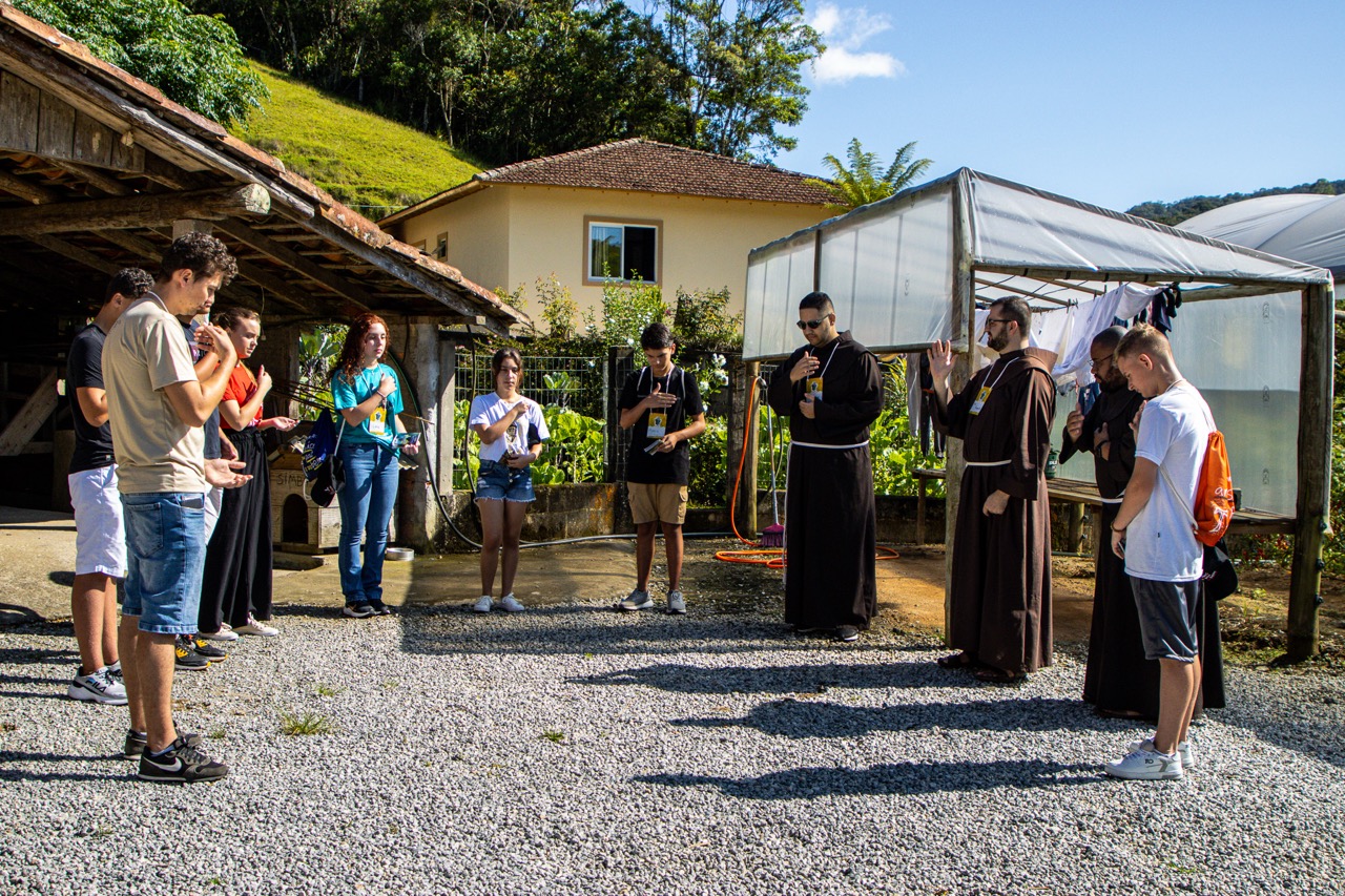 Santo Amaro da Imperatriz (SC) – Neste sábado (31/01), os jovens franciscanos deram início às atividades missionárias da 9ª edição das Missões Franciscanas da Juventude (MFJ) nas cidades de Santo Amaro da Imperatriz e Águas Mornas, em Santa Catarina. Divididos entre os dois municípios, os jovens missionários, acompanhados por frades, seminaristas, religiosas e leigos das comunidades paroquiais, levaram às famílias a esperança, a oração e a presença viva do carisma franciscano.