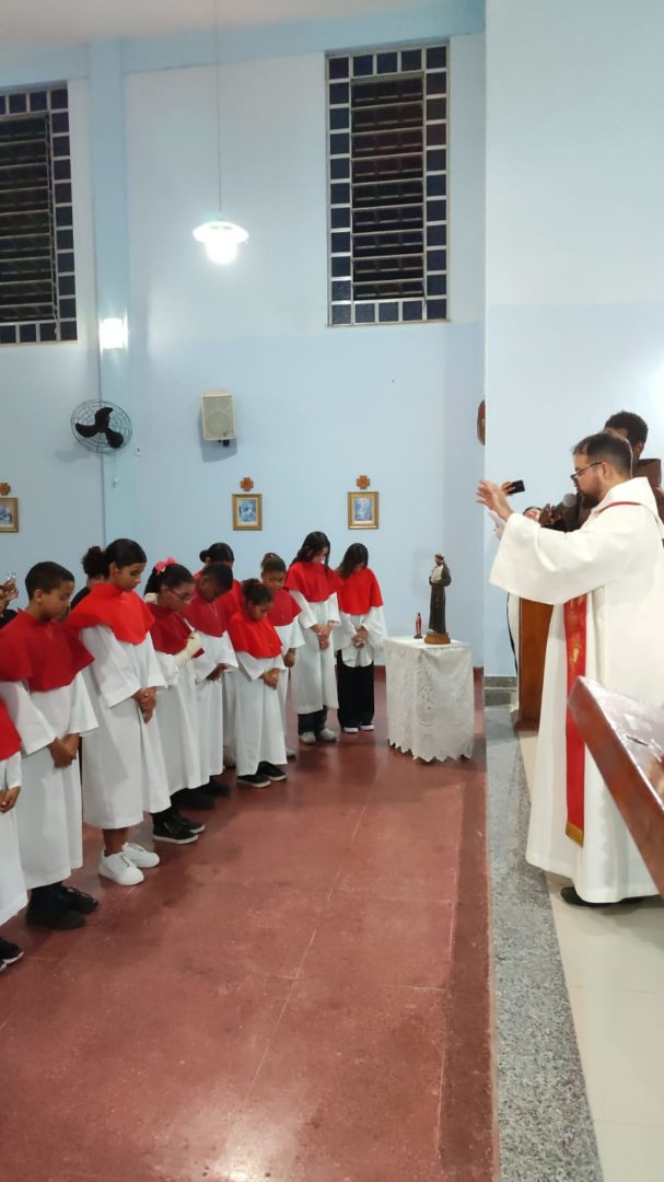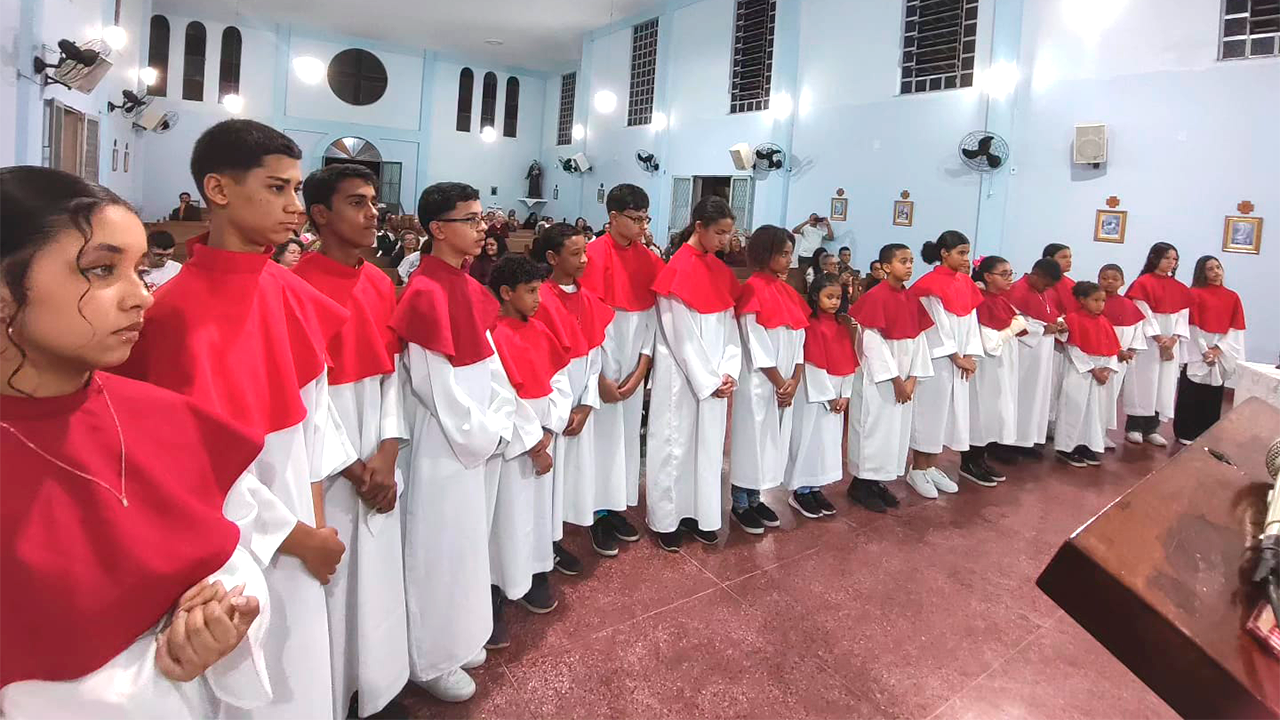Na noite de terça-feira, 19 de agosto, a Paróquia Santa Clara de Assis, no bairro Imbariê, em Duque de Caxias (RJ), celebrou uma noite de fé, gratidão e renovação de compromissos. A comunidade se reuniu em torno do altar para celebrar a Missa em Ação de Graças pelos coroinhas, jovens e crianças que dedicam seu tempo e coração ao serviço do Senhor.