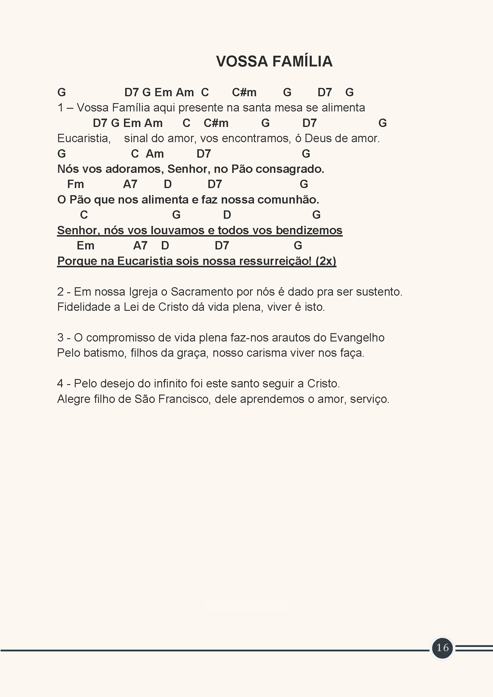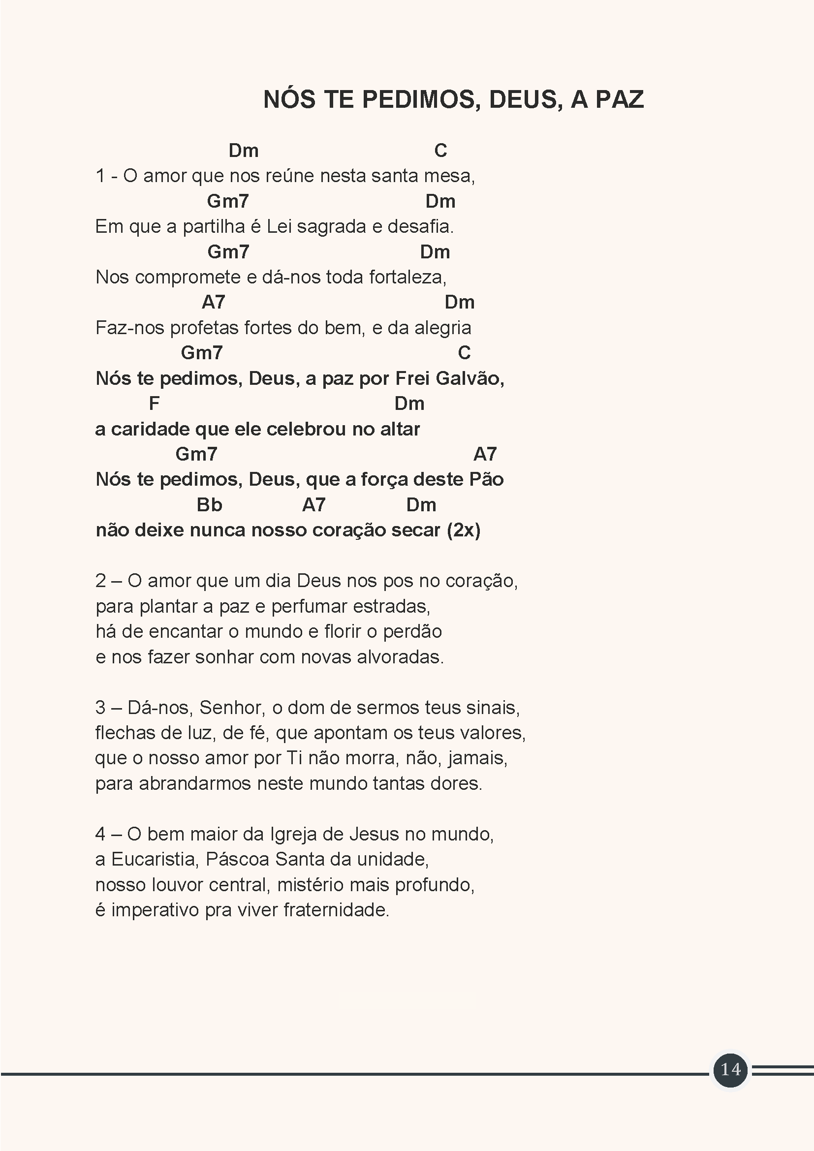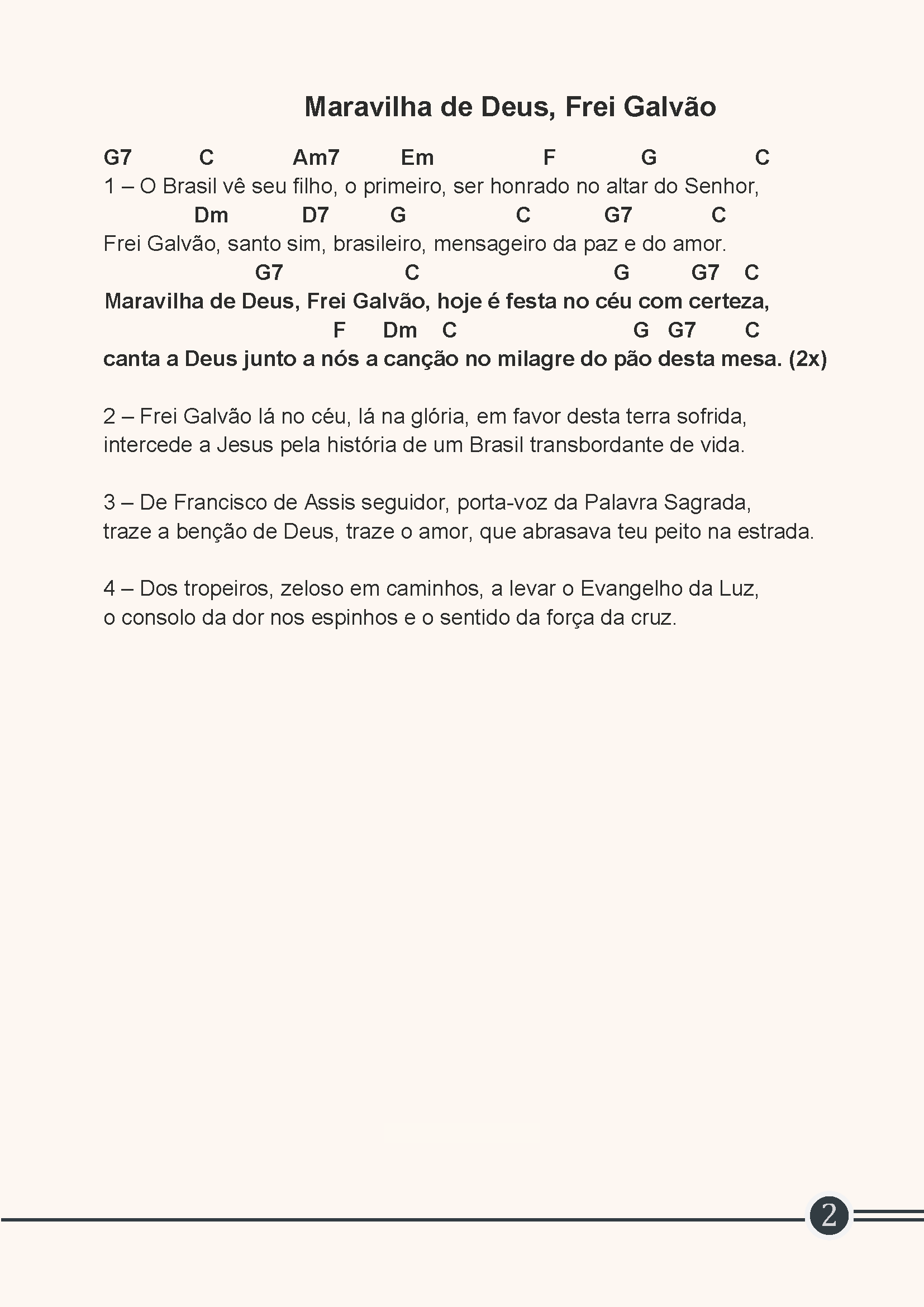 Que a Igreja do Brasil, ao celebrar o primeiro Santo Brasileiro, torne-se a grande testemunha da caridade e da paz.