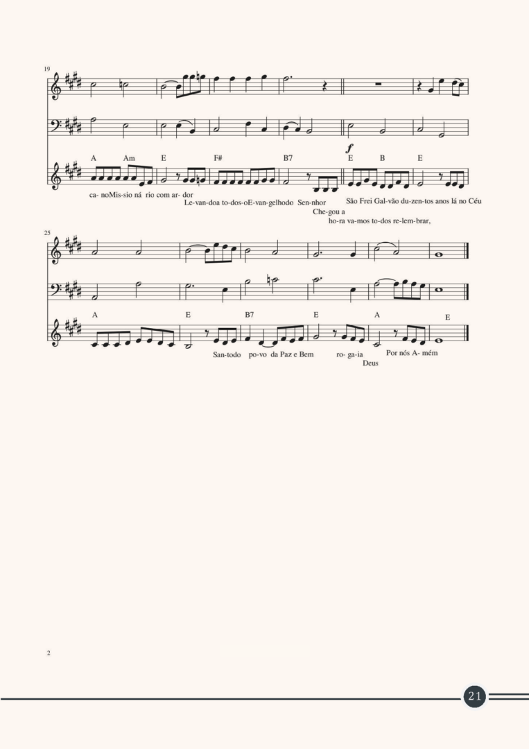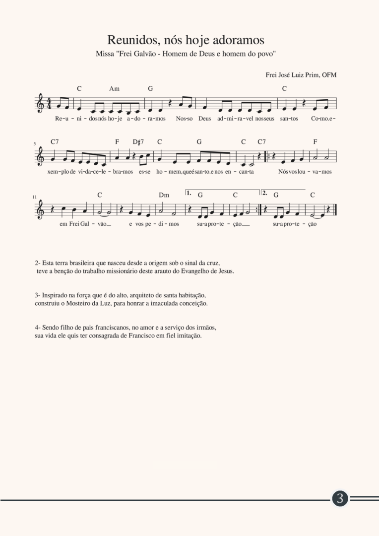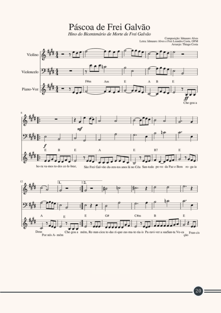 Sendo assim, para celebrarmos a fé na ressurreição, o Santuário Frei Galvão, situado em Guaratinguetá – SP, traz aos fiéis uma missa votiva dos 200 anos, partituras com cantos próprios, um folheto de cantos e o Hino ao bicentenário.