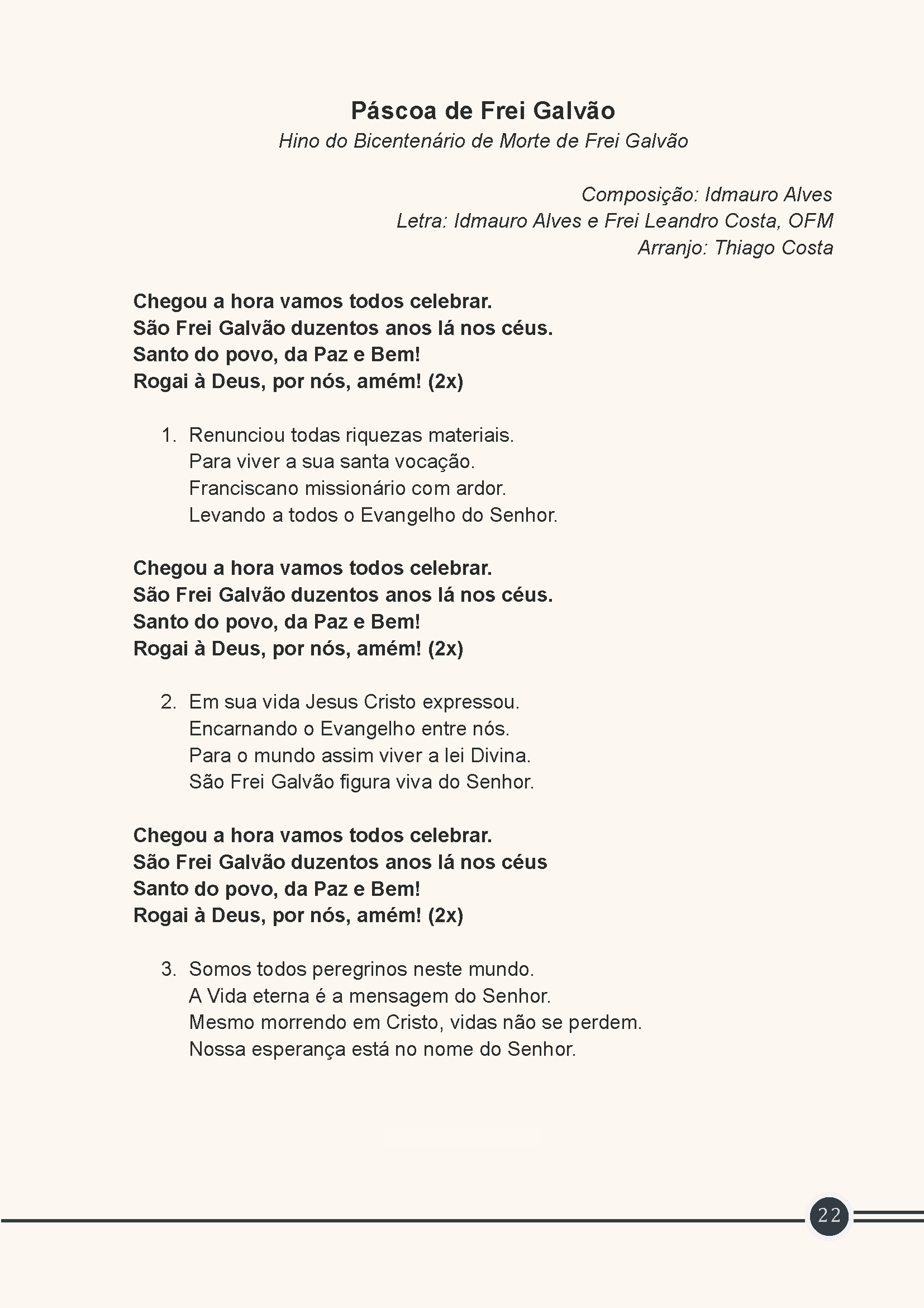 Letra: Idmauro Alves e Frei Leandro Costa, OFM