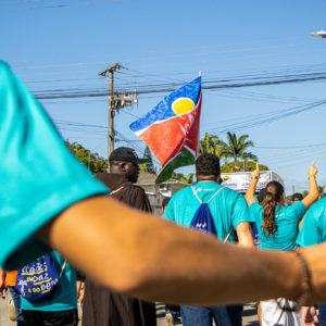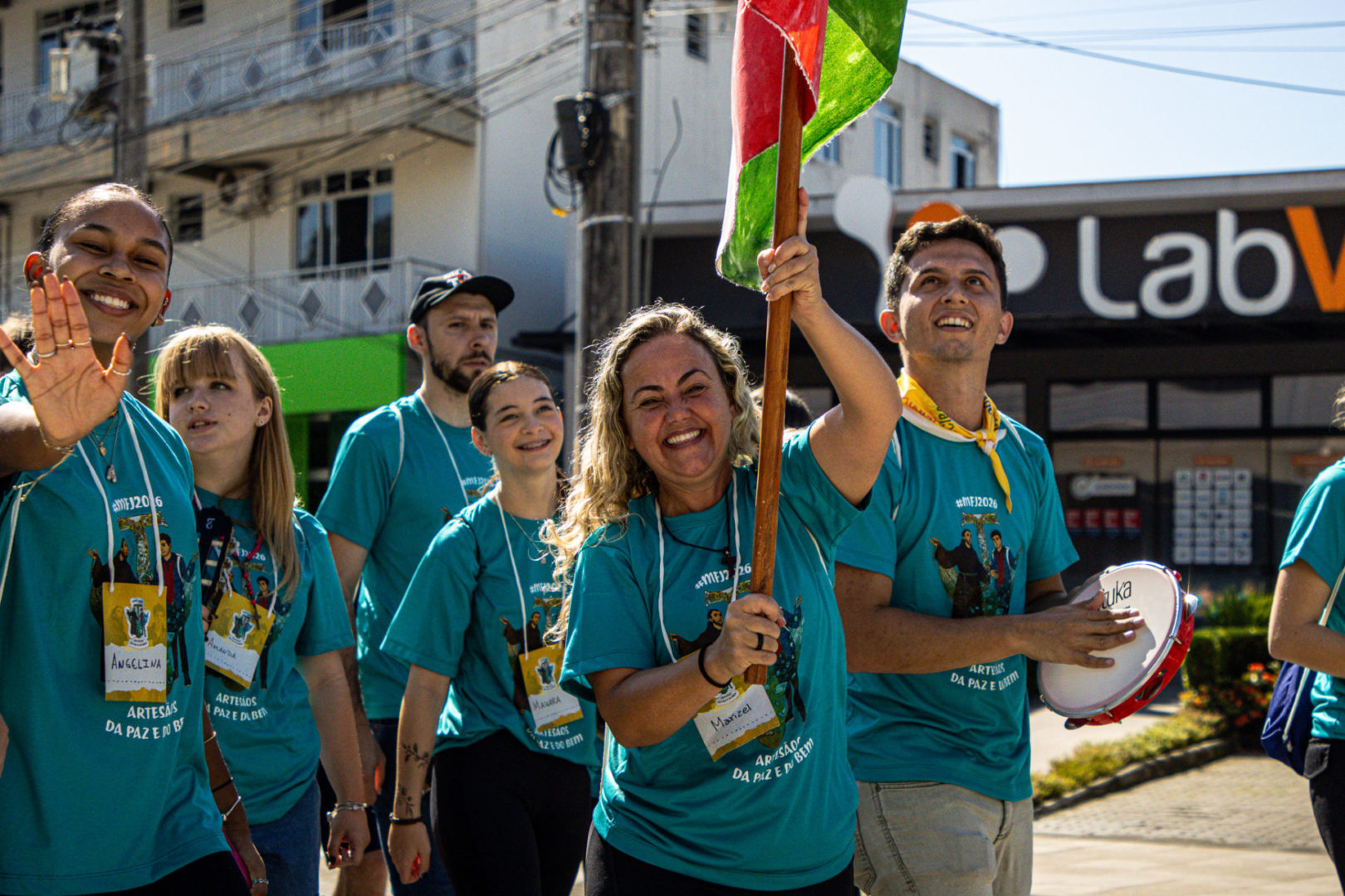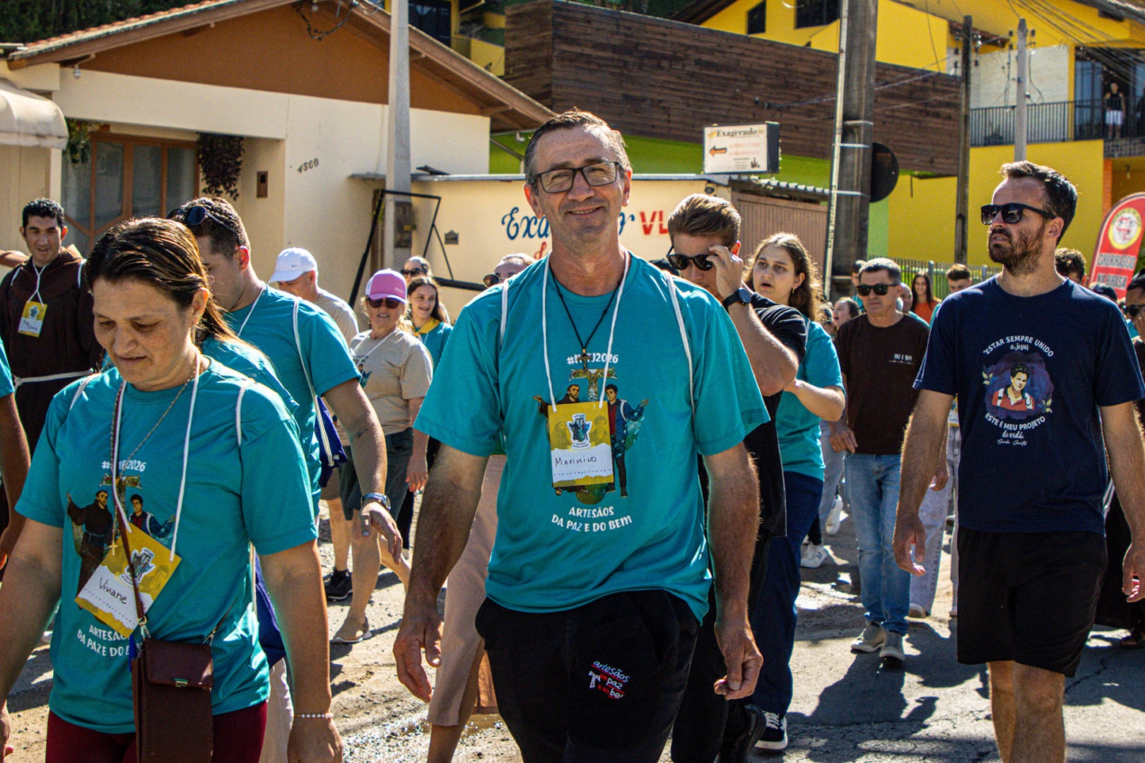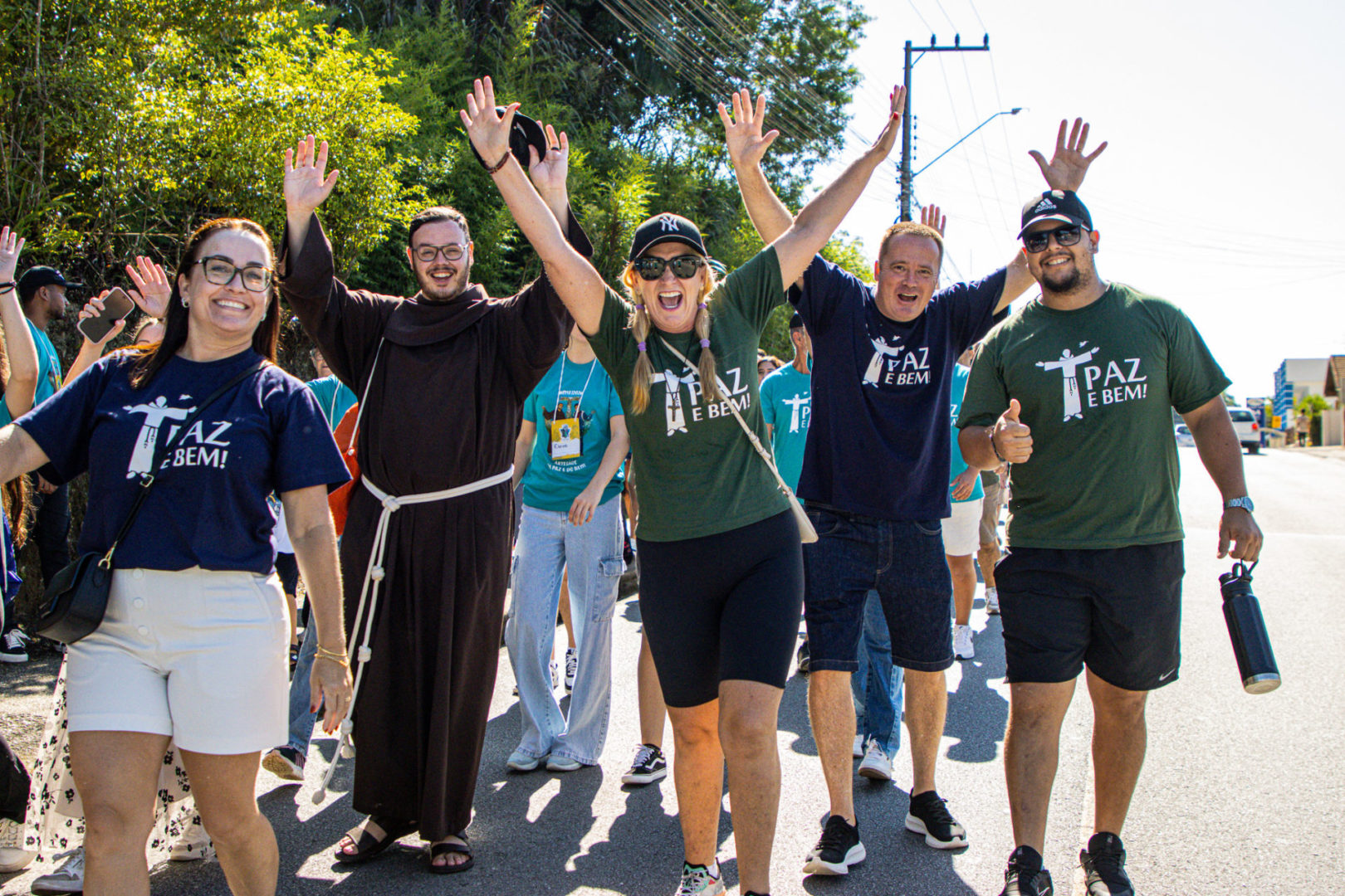 Dentro da programação do último dia da MFJ 2026, na manhã deste domingo (1º), os jovens participaram da Caminhada Franciscana até a Igreja Matriz de Santo Amaro da Imperatriz. A caminhada teve início no CTG Boca da Serra e reuniu centenas de jovens, além de familiares que acolheram os missionários durante os dias de missão.