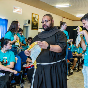 “Quero que vocês sejam seres humanos integrados consigo mesmos; quero que vocês tenham coragem e ousadia para ser, no mundo, luzes onde há tantas trevas; quero que vocês sejam portadores da fraternidade, proclamadores da justiça, anunciadores do Reino e das bem-aventuranças”, destacou o frei.