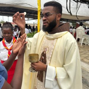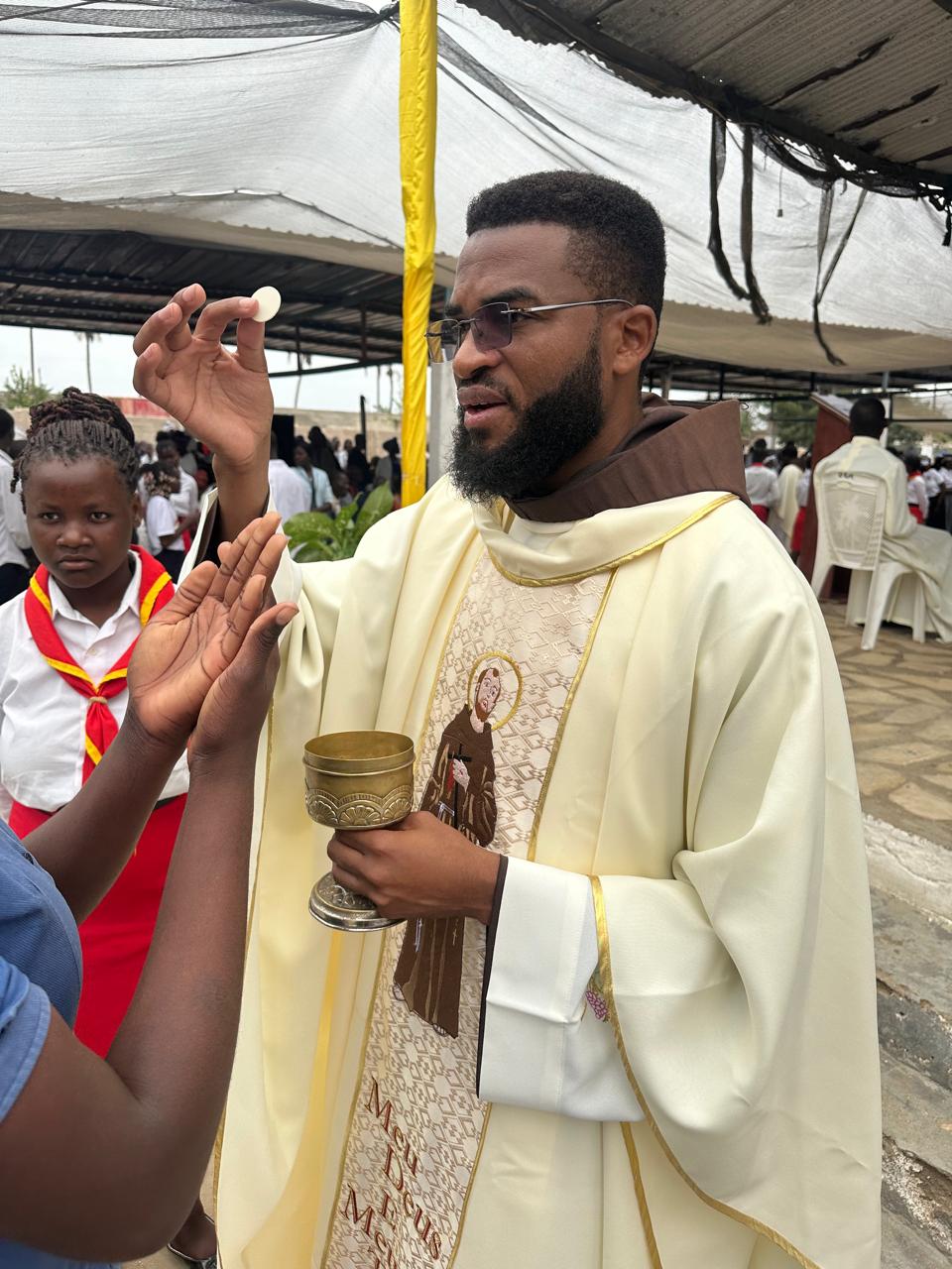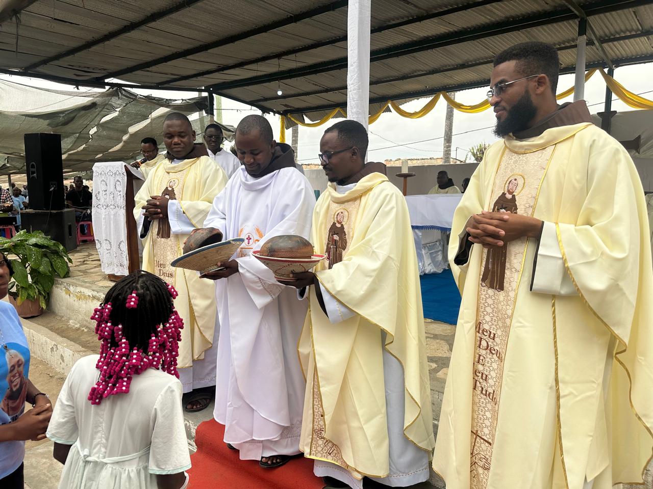 A manhã do dia 31 de agosto,  22º Domingo do Tempo Comum, às 8h30, a Paróquia São José Damba Maria, na Diocese de Benguela, em Angola, foi presenteada com a primeira Celebração Eucarística do Frei Domingos Cacanda Soma, ordenado presbítero em 2 de agosto, Dia do Perdão de Assis.