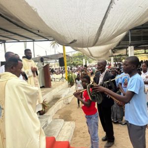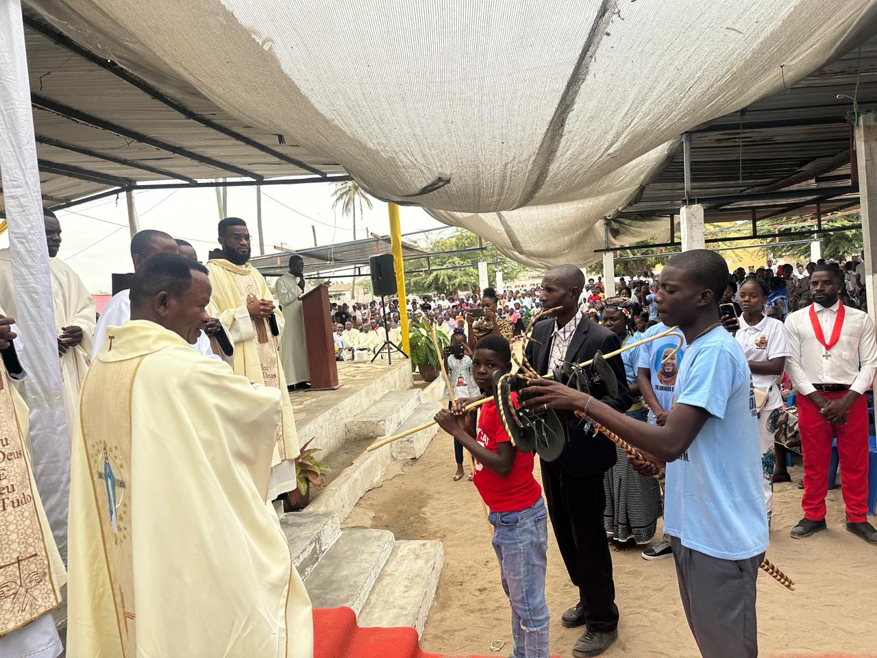 Ao final da Santa Missa, o pároco, padre Ricardo Bavenga Nzunzi, expressou palavras de gratidão e apresentou os visitantes presentes. A celebração foi marcada pela entrega de símbolos culturais — o chapéu, o cajado, a cabaça, as sandálias e a flecha — gesto que significou o abraço fraterno entre cultura e fé, onde a religião acolhe a cultura e a cultura mergulha suas raízes na fé.