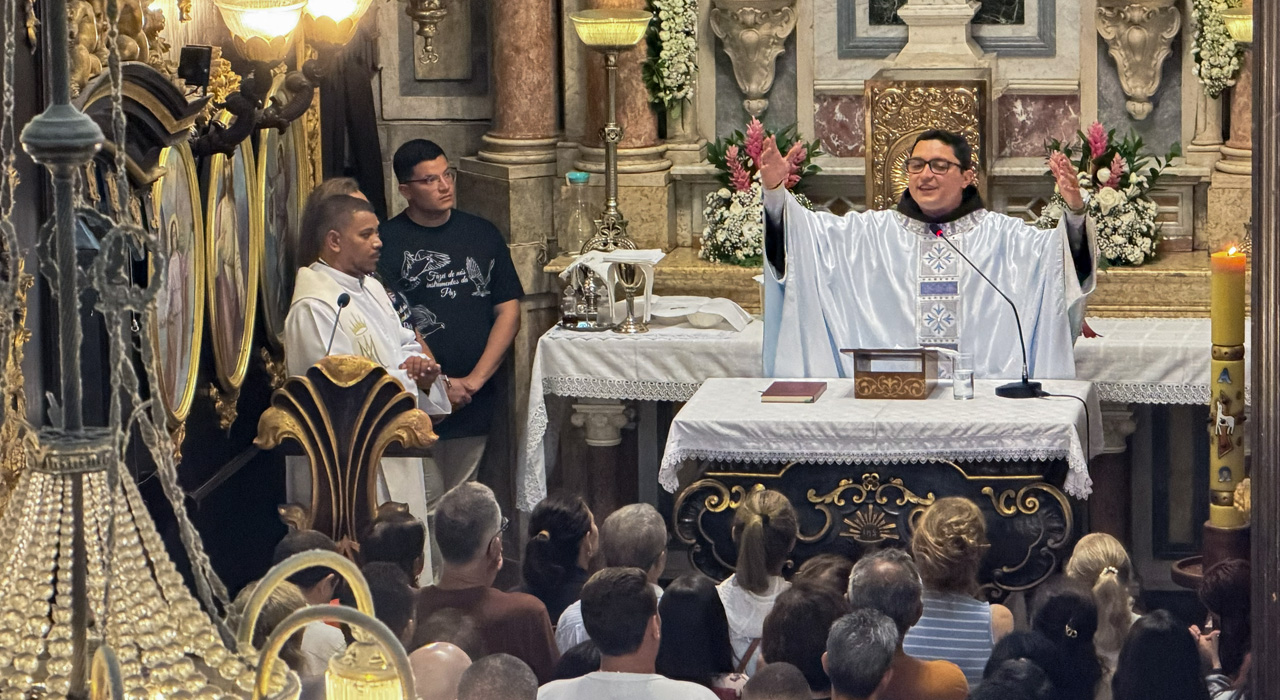 Na homilia, Frei Gabriel aprofundou o sentido da festa mariana a partir da relação entre Cristo e sua Mãe. Ele destacou que toda a celebração da Festa da Penha é, antes de tudo, um louvor a Deus pela vitória de Jesus Cristo. “Minha mãe sempre diz que, quando ouve um elogio sobre um filho, ela se sente mais elogiada do que se fosse para ela mesma. É isso que celebramos: rendemos louvores a Deus porque Jesus ressuscitou. E, ao proclamarmos a glória do Filho, o coração da Mãe se enche de alegria, um santo orgulho. A missão de vida dela deu certo!”, disse, levando os fiéis a compreenderem que honrar Maria é também exaltar a obra de Deus realizada em Cristo.
