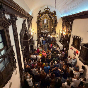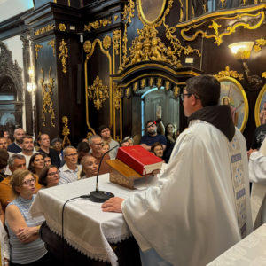 Durante o ato penitencial, o frei fez uma reflexão significativa ao recordar os 456 anos da Festa da Penha, destacando a espiritualidade do “ser menor”, tão presente no carisma franciscano. Relacionando com a própria capela, simples e pequena, ele convidou os fiéis a assumirem uma atitude de humildade diante de Deus. “Quando nos percebemos pequenos, é que nós podemos ter certeza de que os menores cabem em qualquer lugar. Assim também os que se fazem pequenos cabem em todos os lugares. Por isso, no início desta celebração, vamos nos fazer menores. Porque o menor cabe em todo lugar. E nós vamos caber agora no coração de Deus, rico em misericórdia”, afirmou, conduzindo a assembleia ao momento de conversão e oração.