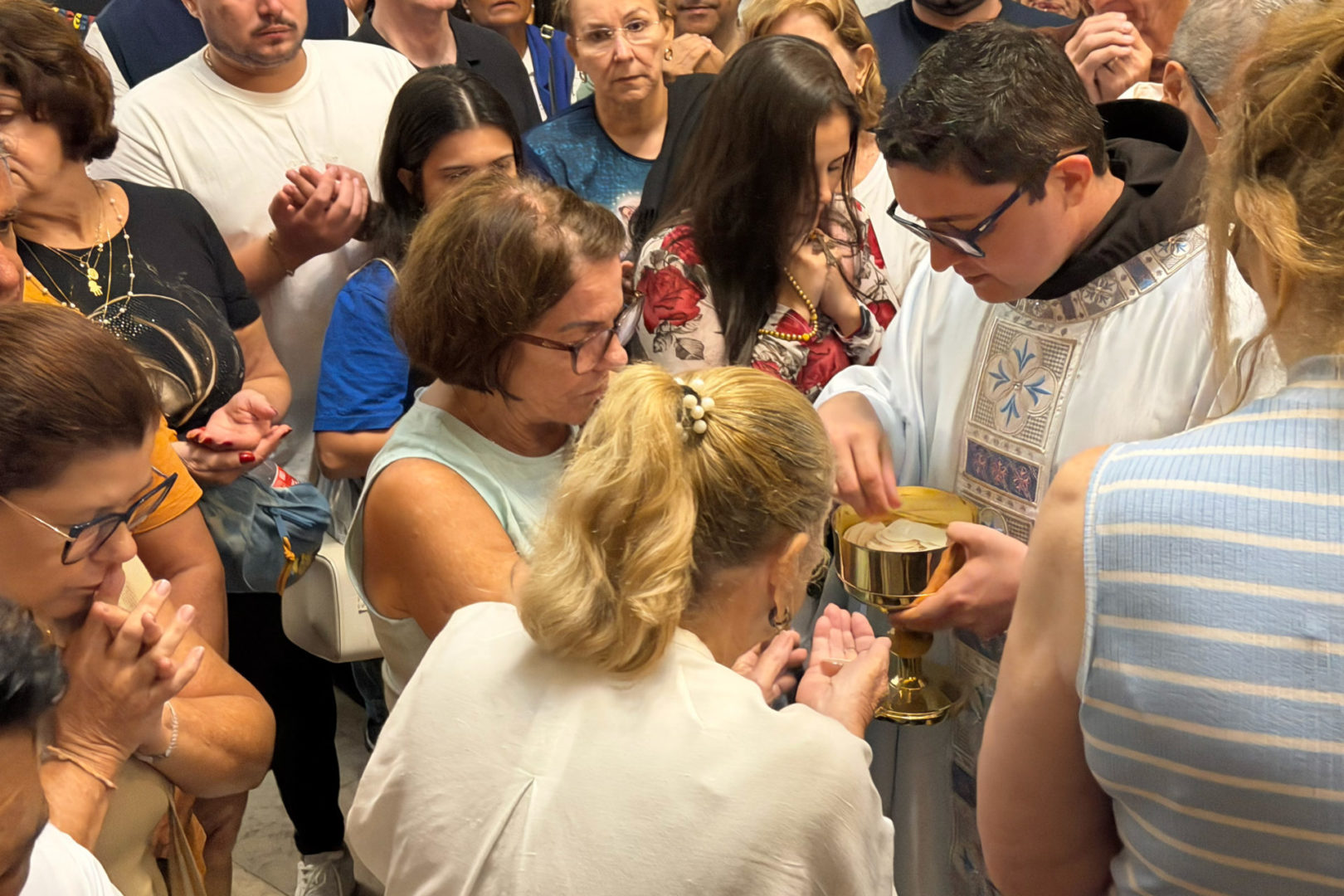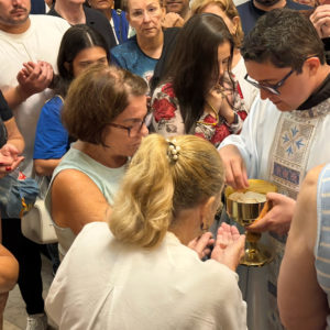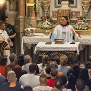 Logo no início da celebração, Frei Gabriel acolheu os presentes com entusiasmo e convidou todos a proclamarem juntos um viva à Padroeira dos capixabas, Nossa Senhora da Penha. O clima foi de alegria e gratidão, especialmente por se tratar de uma tradição que marca o início do dia mais esperado da festa, sempre conduzida pelo guardião do convento.