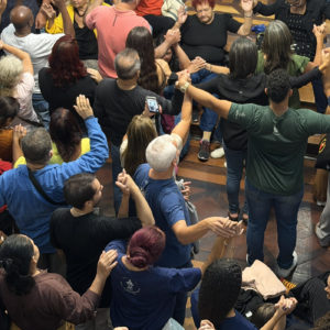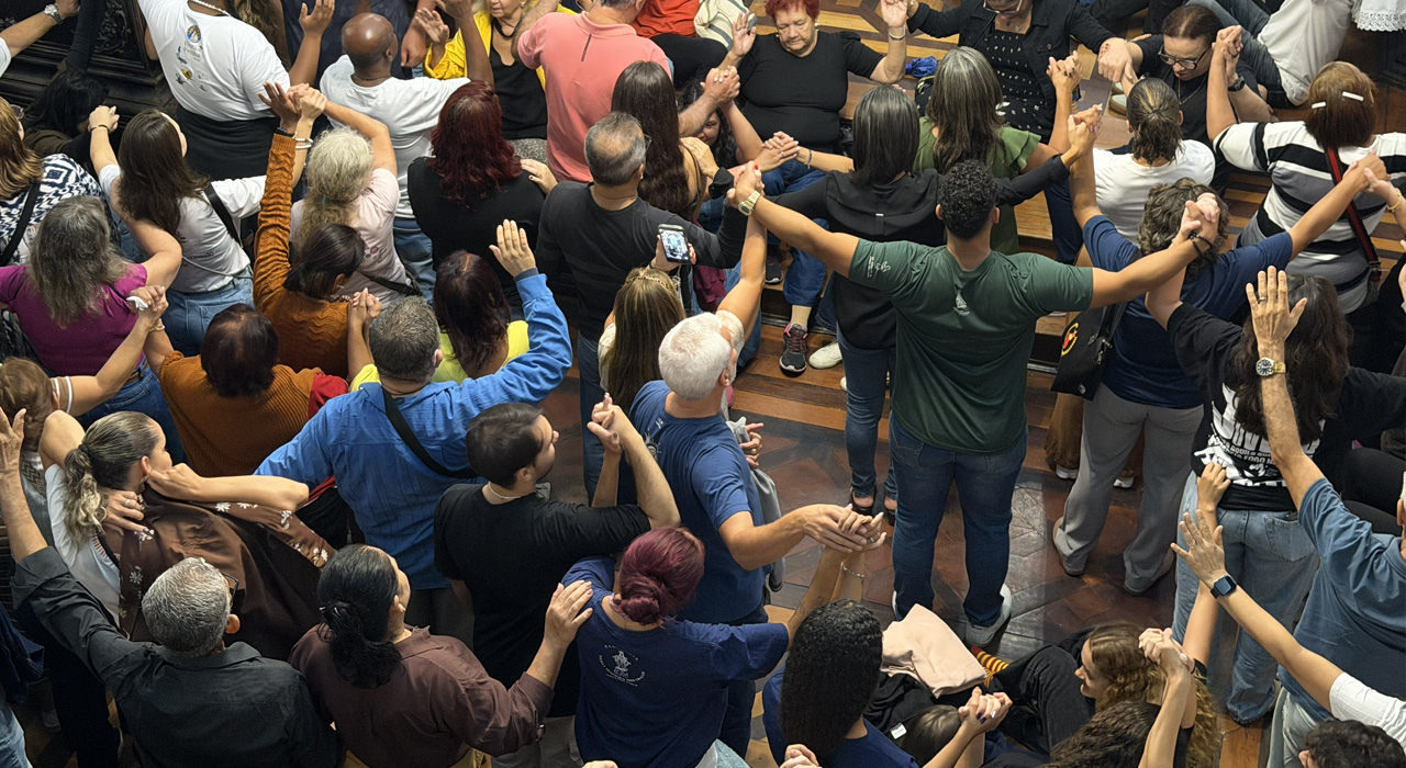Em um gesto simbólico e profundamente participativo, Frei Gabriel convidou os fiéis próximos às paredes a tocá-las, enquanto os demais davam as mãos. “Sintam isso: entramos numa comunhão. Somos agora o exército que desce o Convento para plantar a paz!”, proclamou. Ele recordou ainda que, embora o convento permaneça firme sobre a rocha, cada romeiro leva consigo a graça recebida naquele lugar. “Agora o Castelo da Paz se espalha através de nossas mãos”, completou.