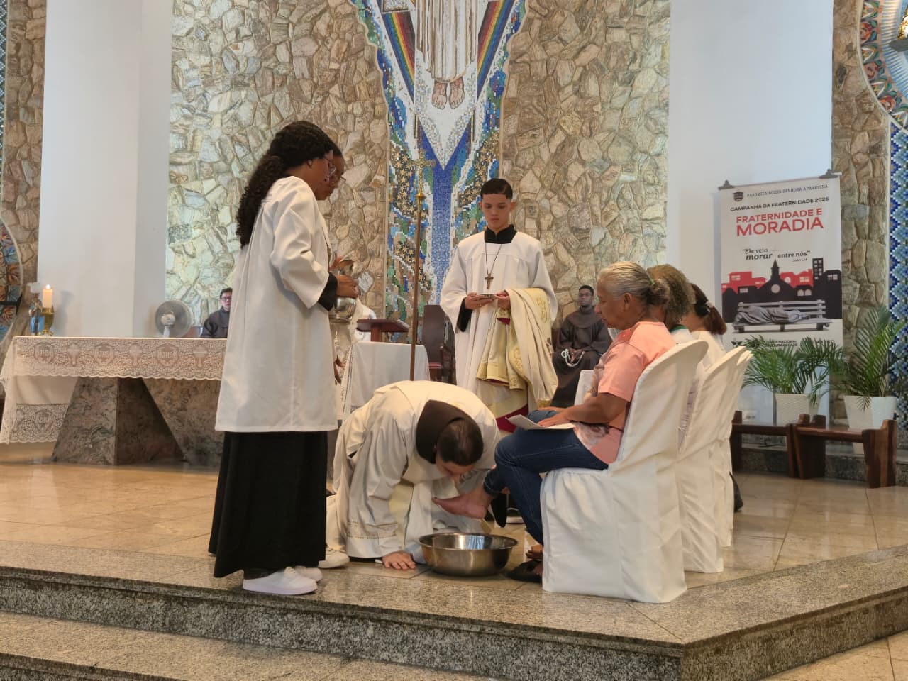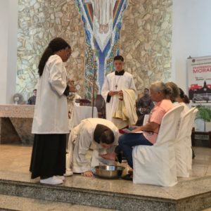 Na Quinta-feira de Lava-pés (02 de abril), a paróquia refletiu sobre o serviço e a humildade, essenciais para o nosso contexto social. Simbolizando os doze apóstolos, foram convidados pessoas ativas no trabalho pastoral social de nossas seis comunidades para que tivessem os pés lavados.