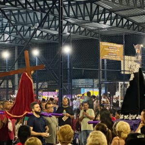 Já na Sexta-feira da Paixão (03 de abril), a Leitura da Paixão foi um convite ao autoexame de consciência. Após a leitura, a Via Sacra Encenada, sob direção de Denise Persan, trouxe vida aos personagens bíblicos. A dedicação das pastorais, grupos e movimentos arrancou lágrimas e encantou a todos os presentes que transbordaram fé e devoção, retratando o Calvário e o amor que não conhece limites.