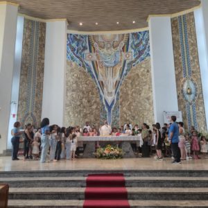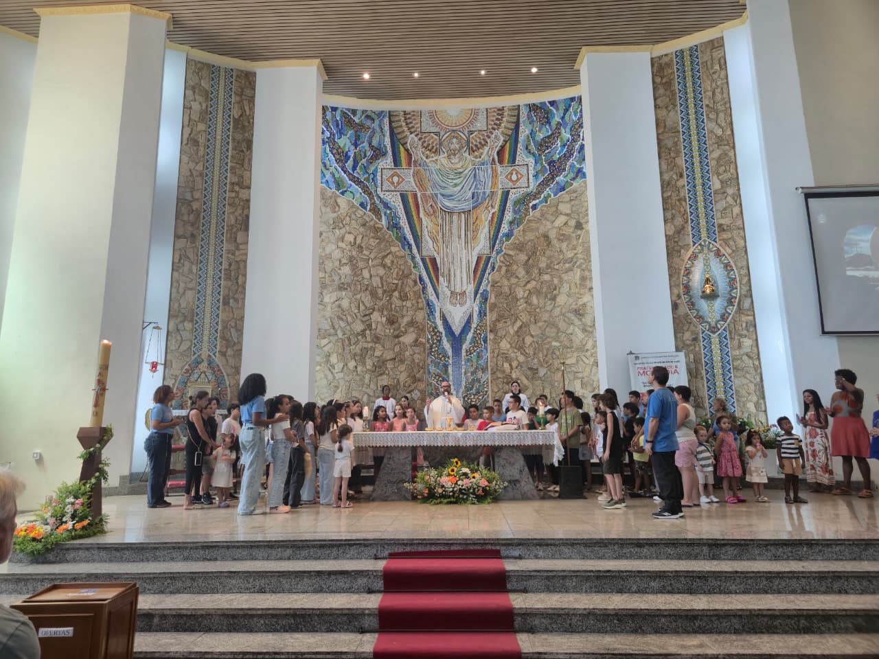 No domingo (05 de abril), houve celebração em nossas seis comunidades que festejaram a vitória definitiva de Jesus sobre a morte. Na missa da catequese que aconteceu às 10h na Matriz, em um gesto de pura esperança, as crianças foram convidadas a participar rezando o Pai Nosso no altar. Elas, que representam o futuro da nossa Igreja, foram motivadas a levar a paz e o amor de Jesus à todos na assembleia através do abraço fraterno.