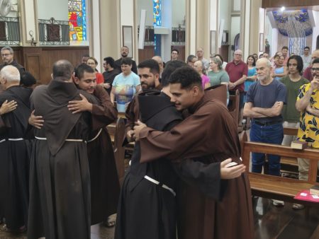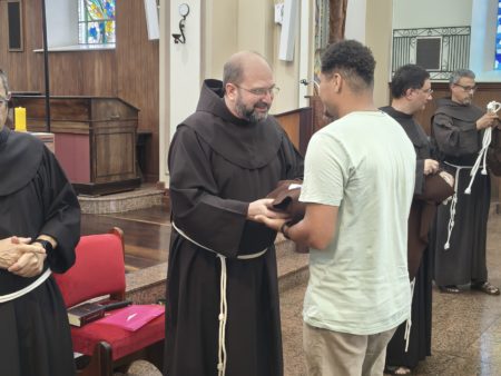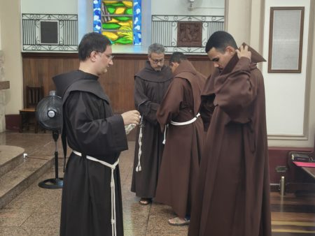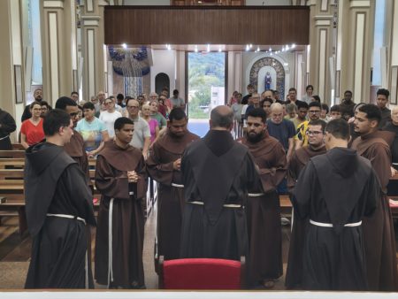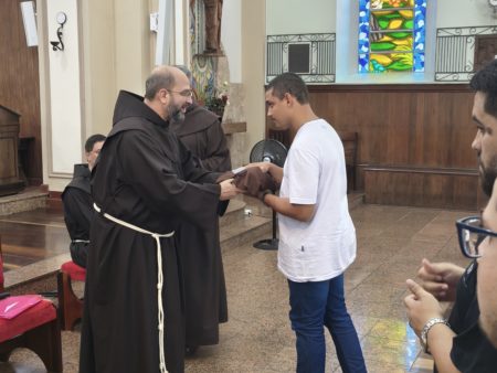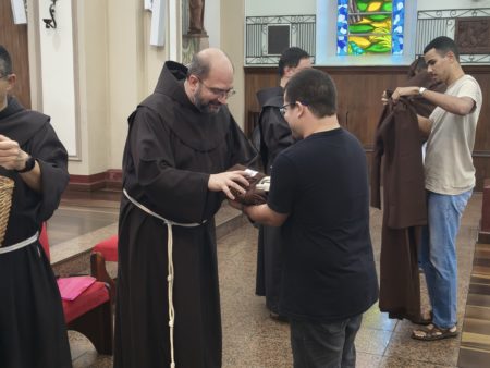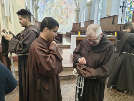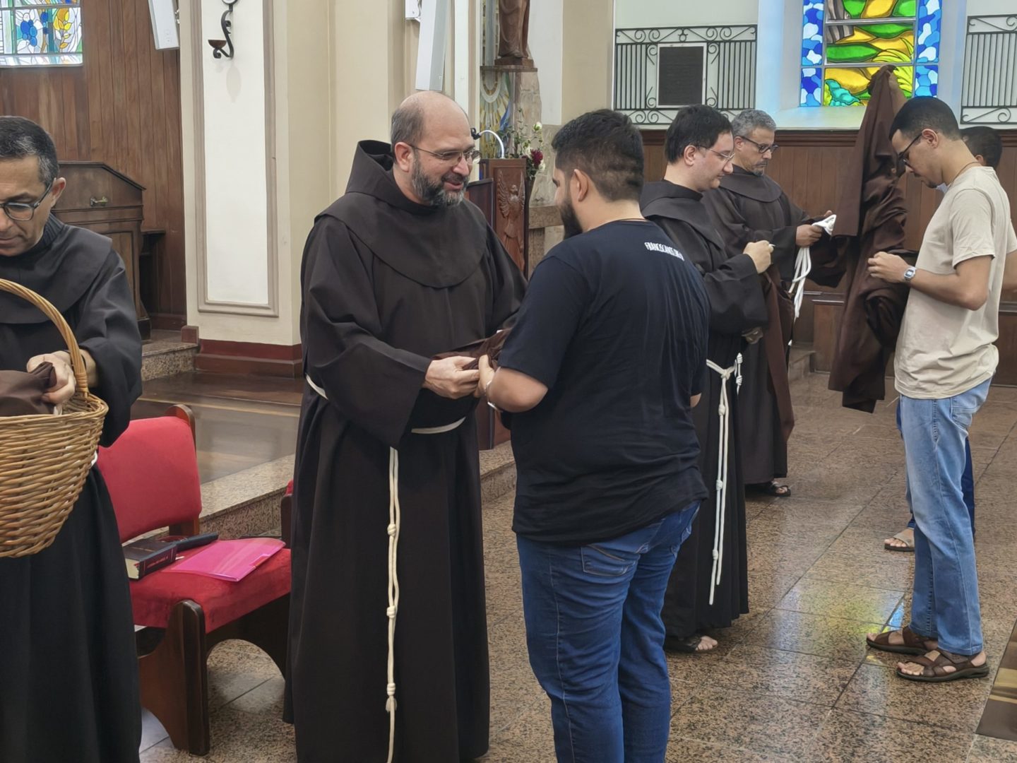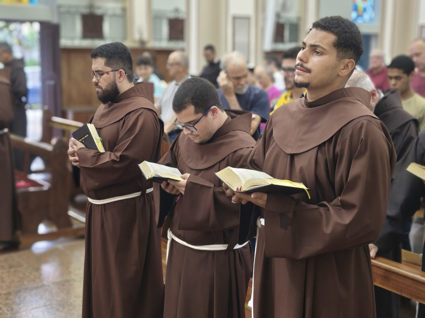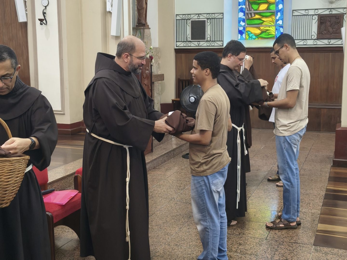 O ponto alto da celebração foi a entrega do hábito franciscano, “talhado em forma de cruz”. Após serem revestidos, os novos noviços, agora entregues aos cuidados do mestre Frei João Francisco da Silva e da fraternidade formadora, entoaram com a assembleia o Magnificat, celebrando as maravilhas operadas por Deus em suas histórias.