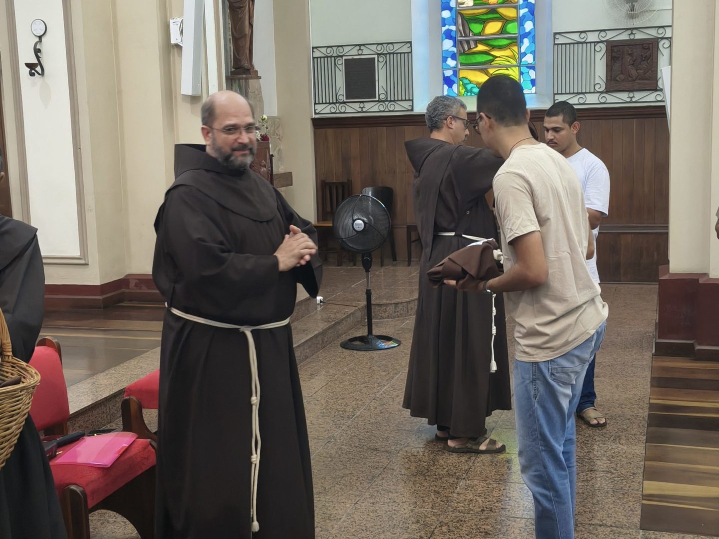 Antes do rito oficial, Frei Paulo Pereira reuniu-se com o grupo para uma partilha sobre o “vigor sempre novo” da caminhada religiosa. O Ministro destacou que a condição de “noviço” não é apenas uma etapa cronológica, mas um estado espiritual de quem está sempre pronto para recomeçar.