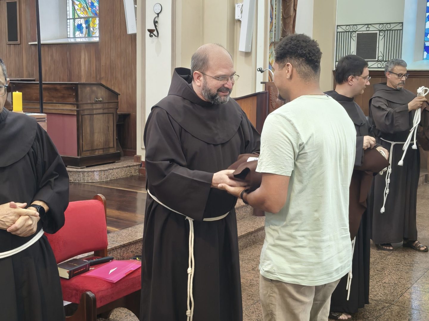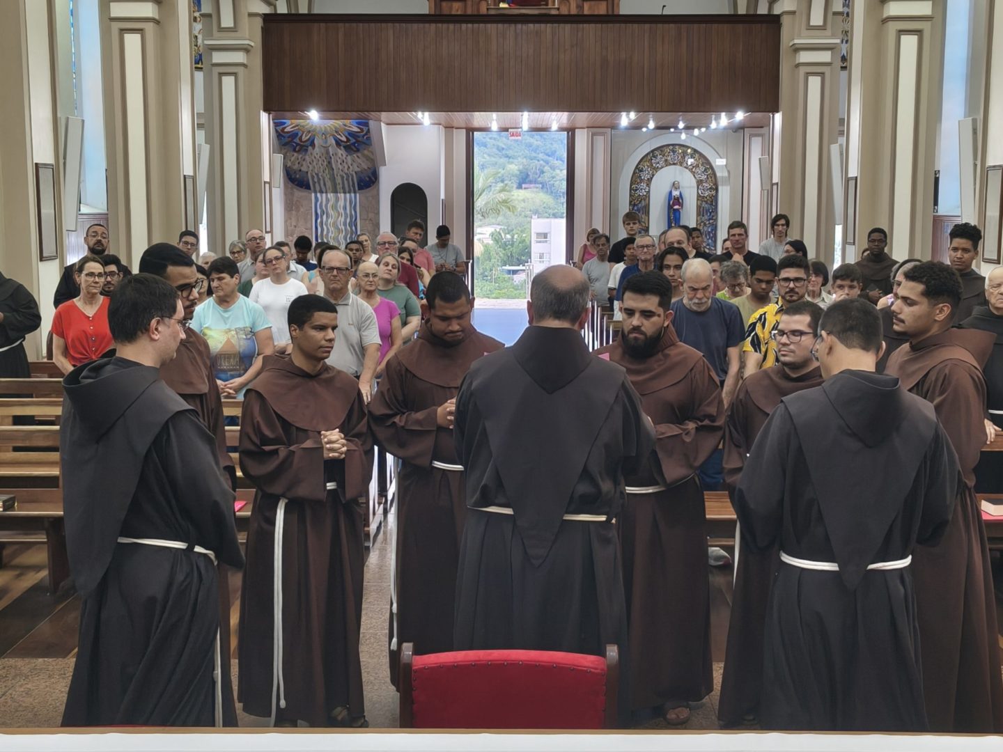 Na tarde da última quinta-feira (15), às 18h, a Igreja Matriz São Francisco de Assis, em Rodeio (SC), tornou-se o cenário de um momento histórico para a Província Franciscana da Imaculada Conceição. Sob o ecoar dos salmos e o som do órgão, seis jovens foram oficialmente admitidos à etapa do Noviciado, recebendo o hábito de provação das mãos do Ministro Provincial, Frei Paulo Roberto Pereira.