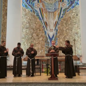 E neste ano estamos celebrando este jubileu tão importante para a nossa Ordem e para toda a Igreja: os 800 anos da Páscoa de nosso Seráfico Pai. Estar aqui em Nilópolis tem um sabor especial, porque esta paróquia, que faz 60 anos de criação neste ano, sempre teve presente em sua história a espiritualidade franciscana. A vida de nosso Seráfico Pai está também marcada na vida de nosso povo, não só na vida dos frades. E isso muito nos alegra e nos faz perceber que a nossa herança e a vida de Francisco ainda vivem.