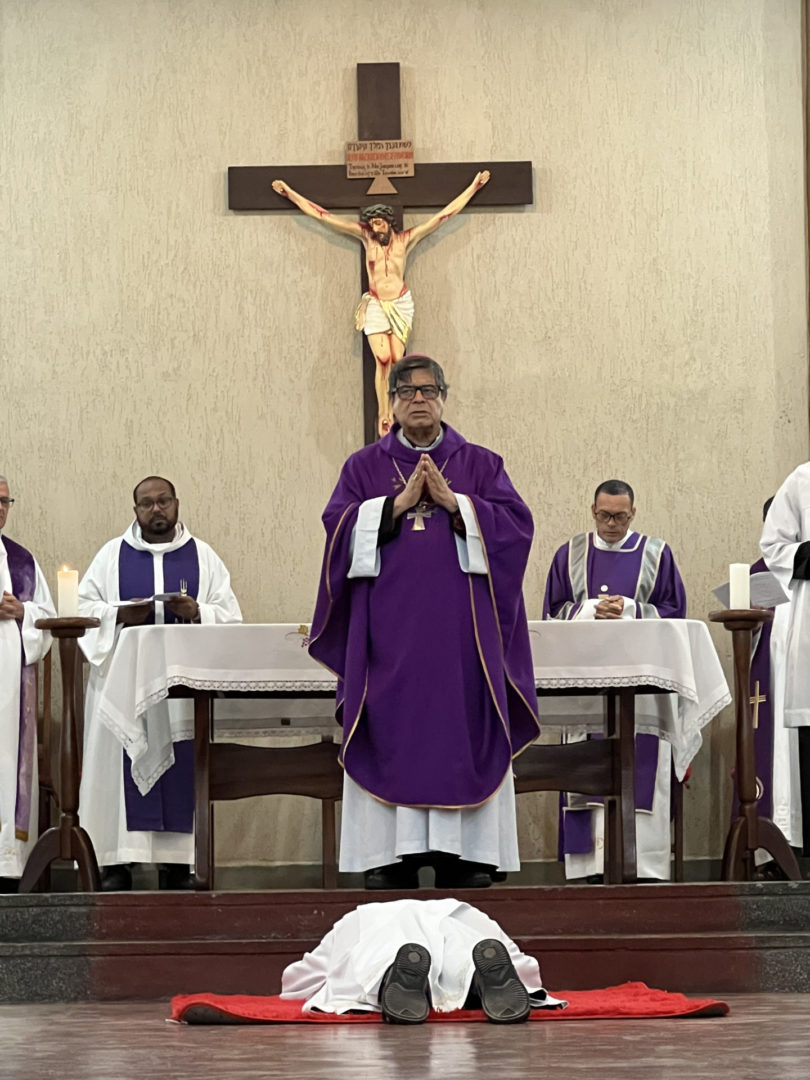 Em seguida, o ordenando manifestou publicamente seu propósito, respondendo afirmativamente às interrogações do bispo, assumindo o compromisso de servir com humildade, guardar o mistério da fé, viver o celibato por amor ao Reino, perseverar na oração e imitar o exemplo de Cristo servo. O momento de maior intensidade espiritual ocorreu durante a Ladainha de Todos os Santos, quando Frei Ruan se prostrou em sinal de total entrega a Deus e à Igreja.