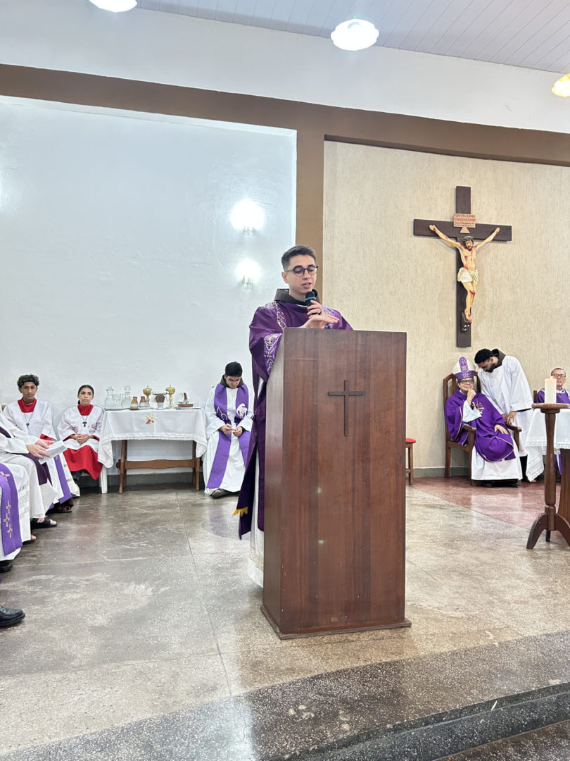 Inspirada pelo lema “Fazei tudo o que Ele vos disser” (Jo 2,5), a celebração destacou o chamado ao serviço e à obediência da fé, próprios do ministério diaconal. Desde os ritos iniciais, o clima era de ação de graças e júbilo pela vocação de Frei Ruan, que recebe da Igreja o primeiro grau do Sacramento da Ordem.