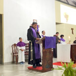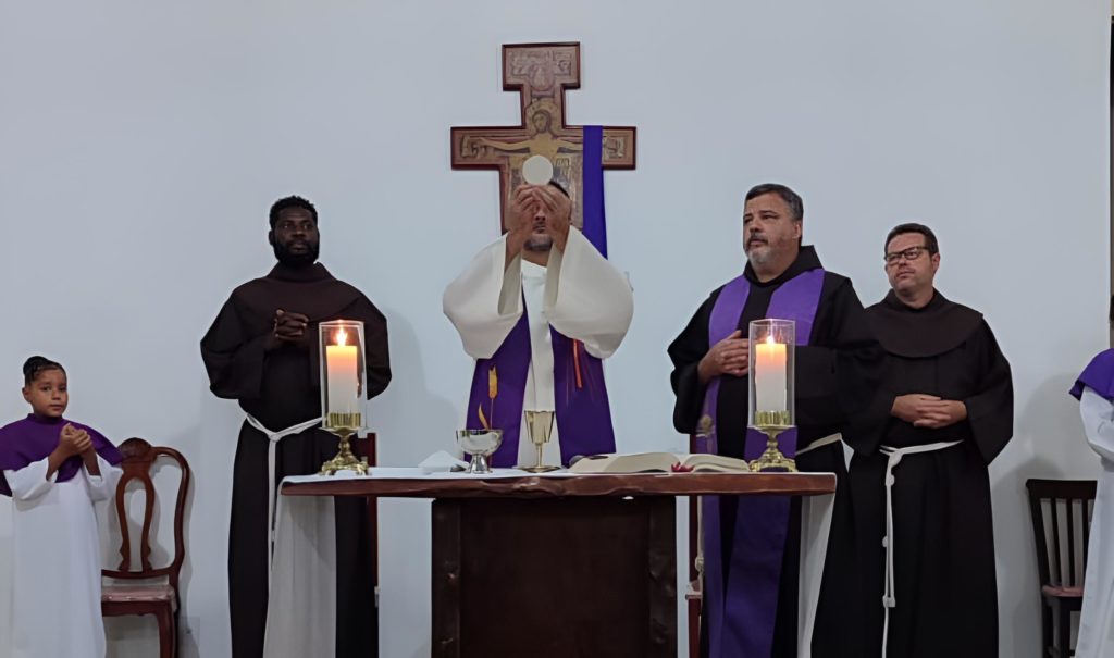 A missa foi presidida pelo pároco, Frei Jean Carlos Ajluni Oliveira, OFM, que, em sua homilia, refletiu com profundidade sobre a liturgia do 2º Domingo da Quaresma, na qual contemplamos o Cristo transfigurado no Monte Tabor. Frei Jean destacou que a luz da Transfiguração também iluminou o caminho de São Francisco, que, ao se encontrar com o Cristo pobre e crucificado, deixou-se transformar interiormente e passou a viver uma vida inteiramente configurada ao Evangelho. O pároco também recordou a declaração do Papa Leão XIV, que concedeu Indulgência Plenária a todas as igrejas dedicadas ao Santo de Assis e àquelas pertencentes à Ordem Franciscana e à Família Franciscana, ressaltando a riqueza espiritual que este privilégio oferece aos fiéis durante o ano jubilar.