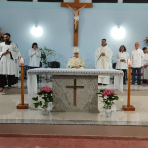 Na noite de sábado, 14 de junho, a comunidade Jesus Crucificado, da Paróquia Santa Clara de Assis, em Imbariê, Duque de Caxias (RJ), se reuniu juntamente com o pastor desta Igreja Particular, Dom Tarcísio Nascentes, para celebrar a Dedicação do Altar desta comunidade de fé.
