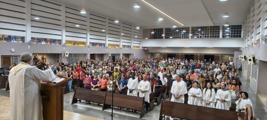 Após a celebração eucarística, o clima de alegria se estendeu para o salão de festas da paróquia. Em uma confraternização que reuniu famílias e lideranças pastorais, a comunidade pôde partilhar não apenas o alimento, mas as memórias de uma trajetória que se entrelaça com a história da própria cidade de Bauru.