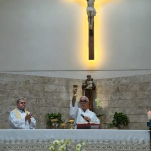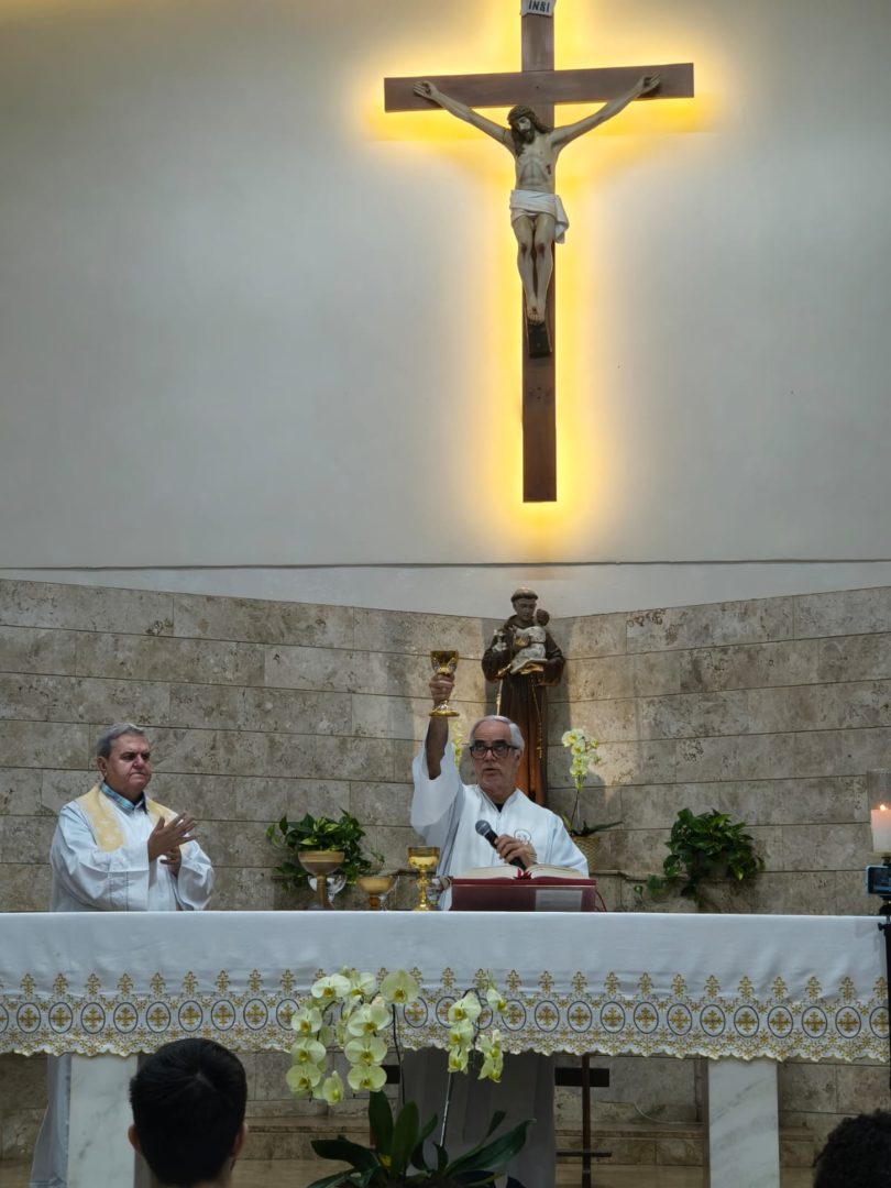A celebração foi presidida pelo vigário paroquial, Frei Carlos Araujo, e concelebrada pelo pároco, Frei James Girardi. Durante a homilia, foi ressaltado que a Paróquia Santo Antônio é, acima de tudo, uma igreja viva, onde cada fiel é parte fundamental desta história de 71 anos. Frei James enfatizou a importância e a identidade de cada uma das comunidades que compõem a paróquia, expressando profunda gratidão pela semente que foi lançada no passado. Com o olhar voltado para o futuro, a mensagem reforçou a co-responsabilidade de todos, lembrando que cada paroquiano é responsável por continuar escrevendo essa trajetória de fé.