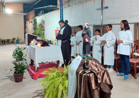 No segundo dia Tríduo (7/7), celebrado na Comunidade do Rosário em Saracuruna, o diácono Ostênio Sabino proclamou o Evangelho onde Jesus chama os discípulos para expulsarem os espíritos maus e para curarem todo tipo de doença (Mt 10, 1-7). “O Evangelho nos lembra a atitude de Jesus onde tudo o que fazemos deve estar em sintonia com a ação Divina, ou seja, em constante oração para escutarmos a voz de Deus. Sendo assim, buscar a sabedoria de Deus fomenta e nos ajuda a vivermos a nossa vocação e missão”, disse Frei Claudio Brocca ao partilhar a palavra com a comunidade. Na quinta-feira (8/07), também houve a bênção do Santíssimo na Comunidade do Perpétuo Socorro com a presença da fraternidade franciscana.