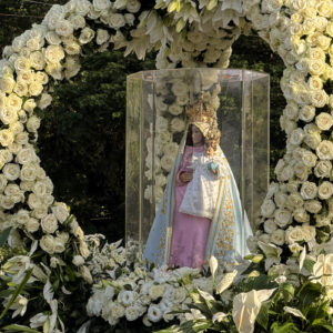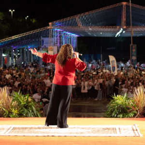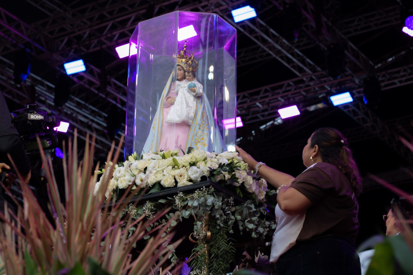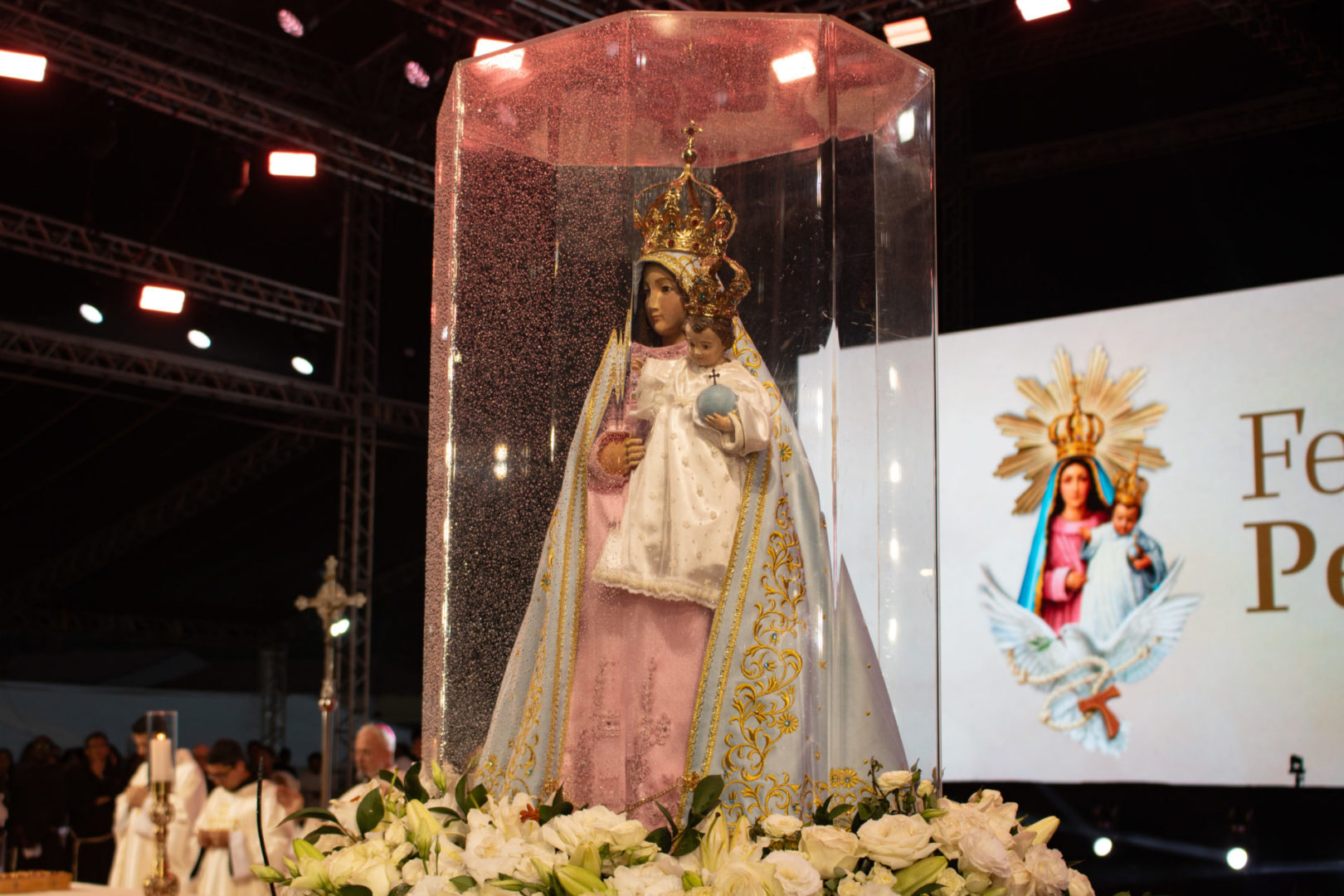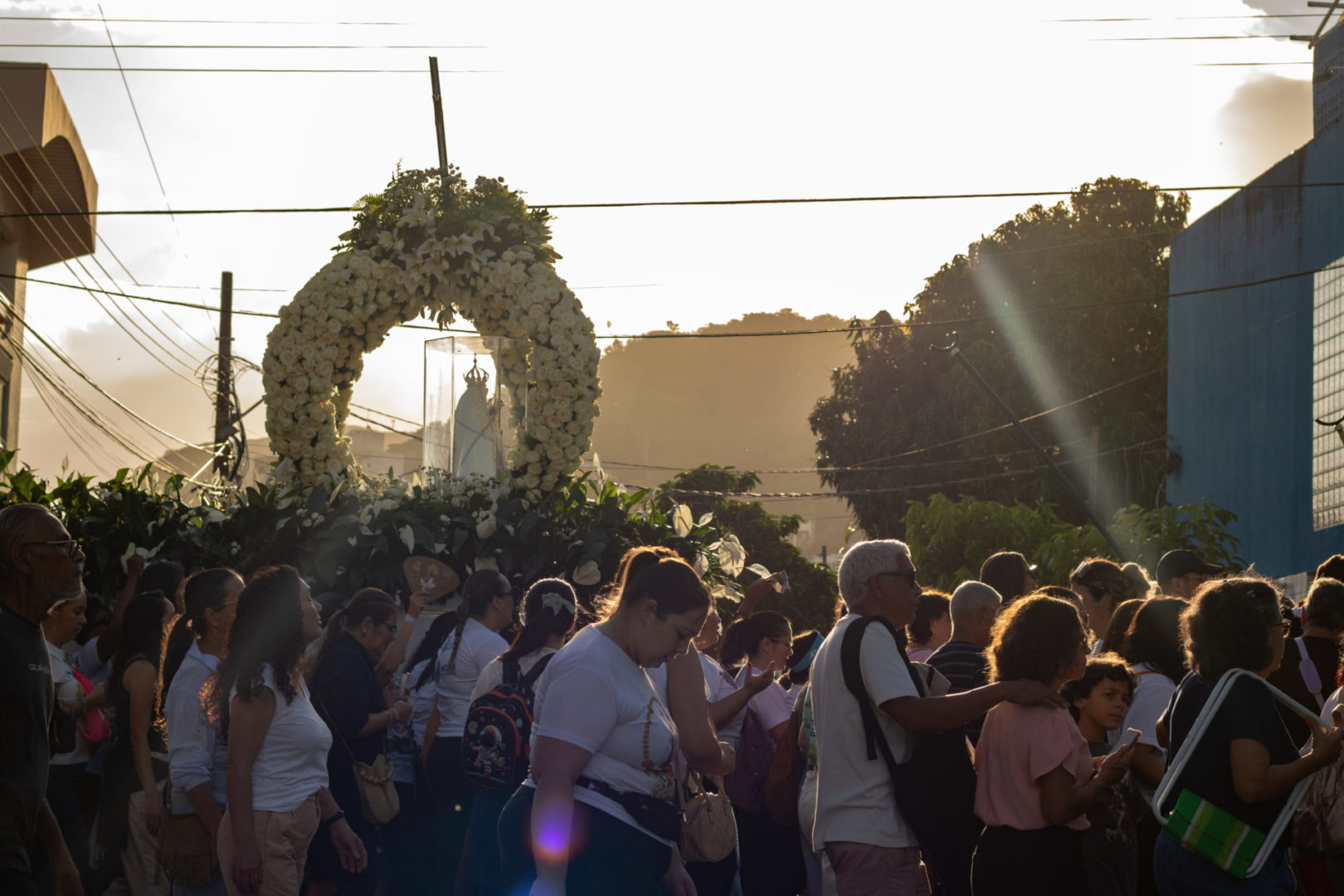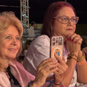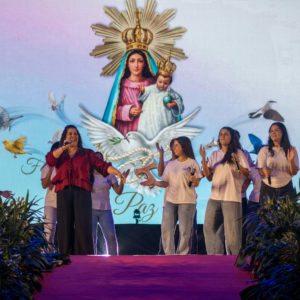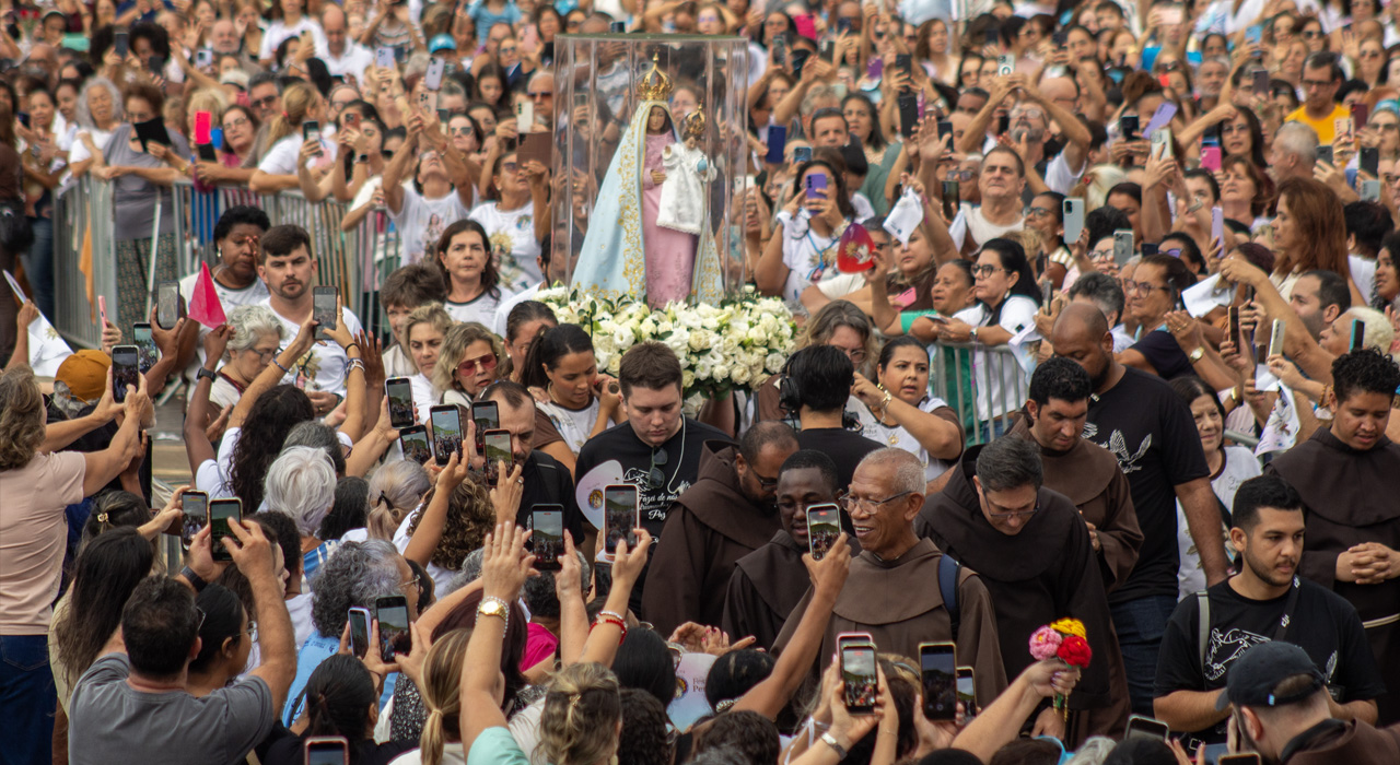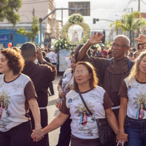 Após a comunhão, Frei Felipe Carreta, frade capixaba, em nome de todos os frades e rodeado por um grupo de sete mulheres vestidas de branco e com velas acesas, apresentou o quadro com a gravura de Nossa Senhora das Alegrias, trazido por Frei Pedro Palácios nos primórdios da história do Convento. No texto da homenagem um agradecimento e um apelo feitos por uma mulher em nome de todas as mulheres: “O sonho de tantas e tantas Marias entregamos ao Pai, na força do Filho, com a luz do Espírito e a proteção da Mãe que caminha conosco. Ela conhece nossas lágrimas, mas também nos ensina a reconhecer os sinais da vida nova. Em seu silêncio fecundo, aprendemos que o perdão é um milagre cotidiano e discreto, mas capaz de mudar destinos. Que, inspiradas por Maria, a Virgem da Penha, e fortalecidas pelo exemplo de Francisco e Clara, possamos sair daqui como quem carrega luz nas mãos: levando o perdão onde houver ofensa, a luz onde houver escuridão, a ternura onde houver dureza, a escuta onde houver gritos, e o amor onde ele ainda não é conhecido. Que a Mãe das Alegrias abençoe cada mulher, cada família, cada coração peregrino e todo o povo capixaba, hoje e sempre”. Após a missa, houve momento oracional conduzido pelo Movimento Mães que oram pelos filhos e show com a cantora Eliana Ribeiro.