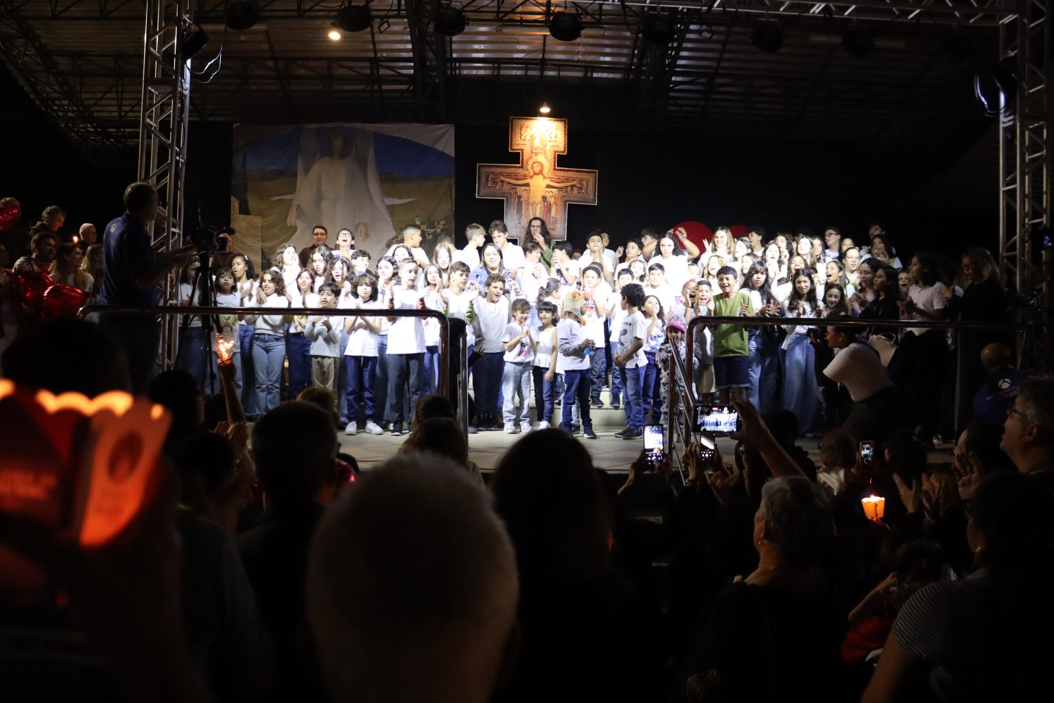 Houve o ato penitencial e a renovação das promessas batismais. Logo depois, Frei Gabriel conduziu o momento do ato penitencial”, rezaram o Pai Nosso e em ação de graças, como experiência franciscana, foram chamados a lançar a mensagem de perdão e de reconciliação. Cerca de 90 crianças espalharam diversos balões em formato de coração, símbolo do amor, do compromisso de esperança.