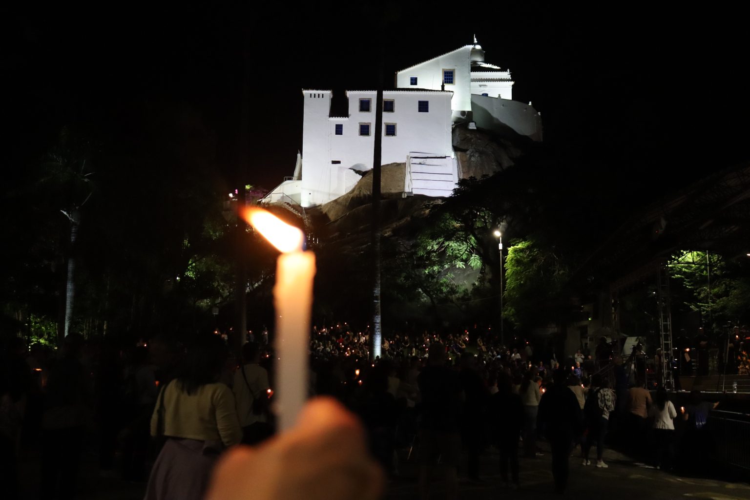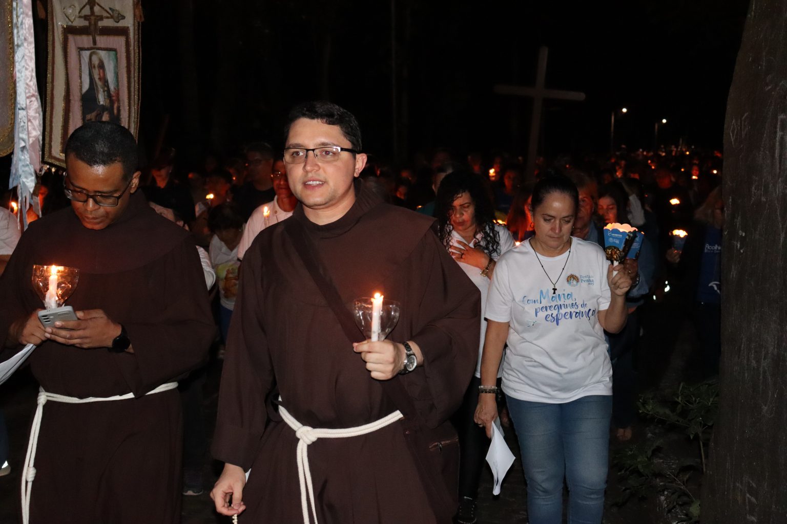 As velas não apenas iluminaram a caminhada, como também encheram de brilho todo o Campinho. A medida em que chegavam, os “peregrinos de esperança” cantavam, recuperavam as forças e entravam no clima de recolhimento, de contrição.