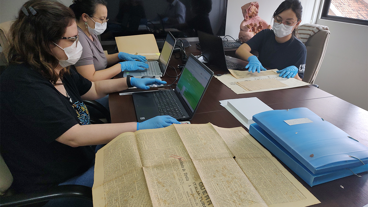 Entre os dias 22 e 25 de abril, as pesquisadoras estiveram na sede da Província para iniciar o levantamento, catalogação e verificação das condições dos documentos disponíveis, guardados nos arquivos e preservados pela arquivista Elisabete Barbero.