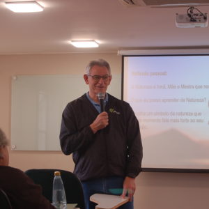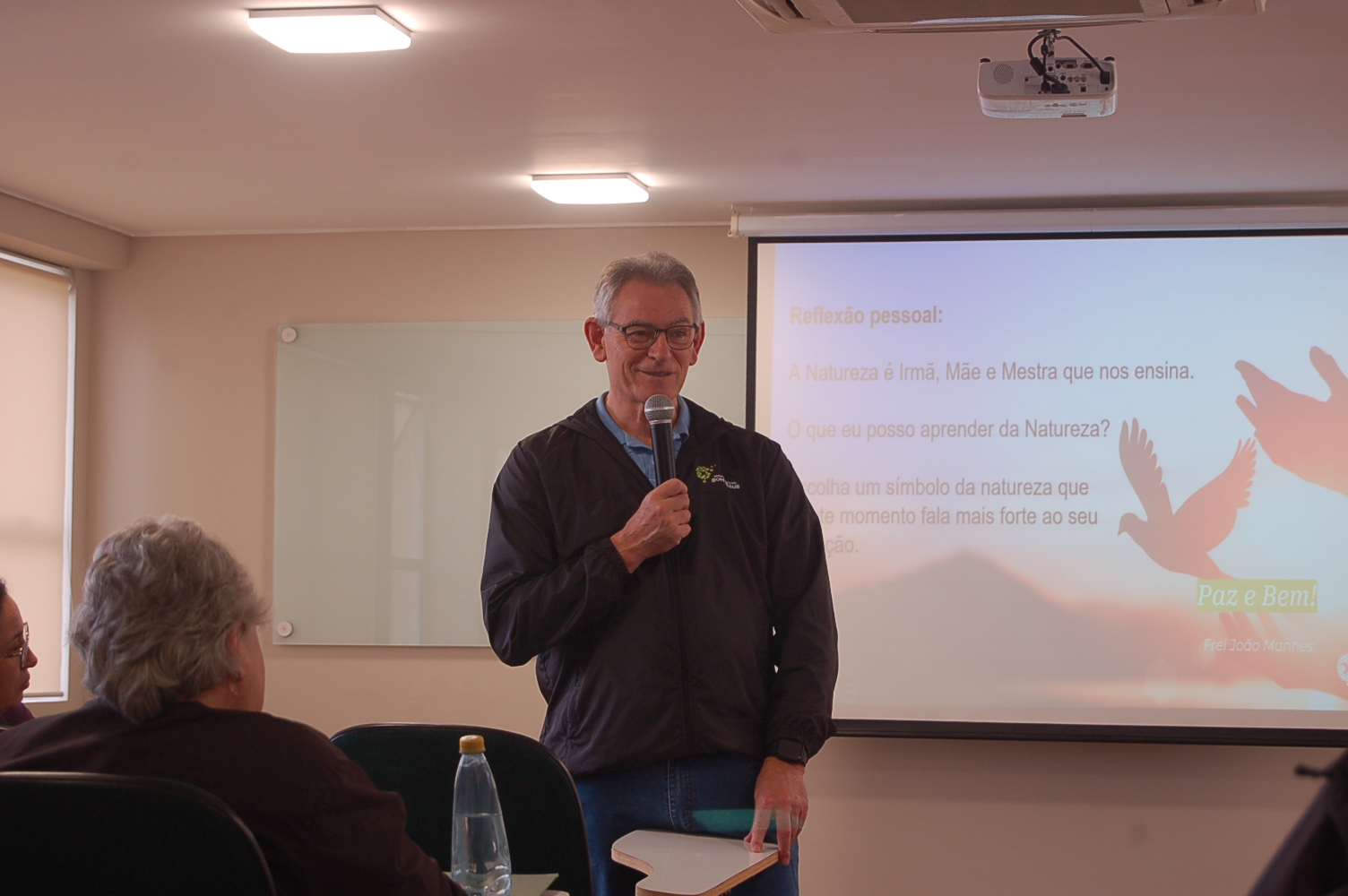 Frei João Mannes, presidente do Grupo, também esteve presente e ministrou a palestra Todas as Criaturas se Alegram em Ti, motivando os participantes, de maneira especial, a explorarem o espaço em meio à natureza.